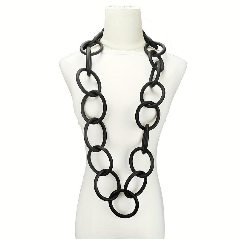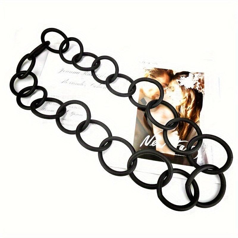 Add a touch of boho tribal style to your look with this long necklace. Made of PU leather with circle link chain and rubber round ring accents, this jewelry piece is perfect for daily wear or party accessories.