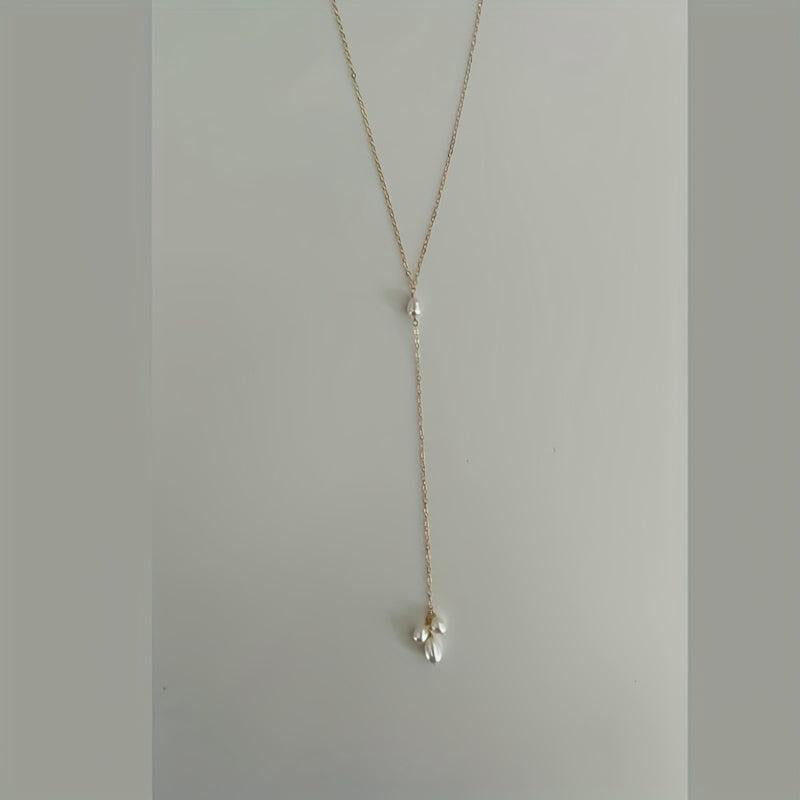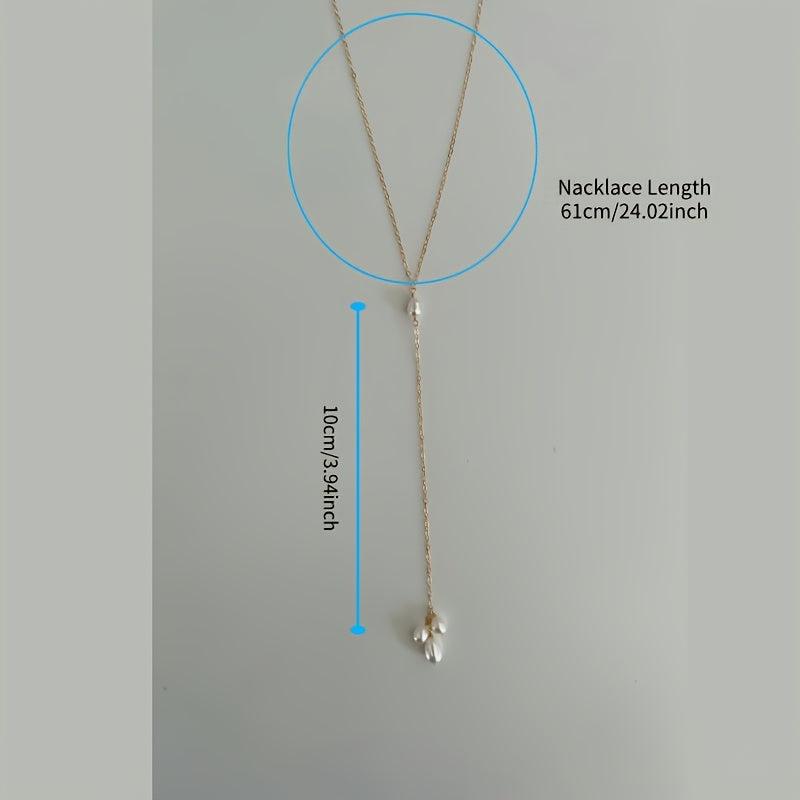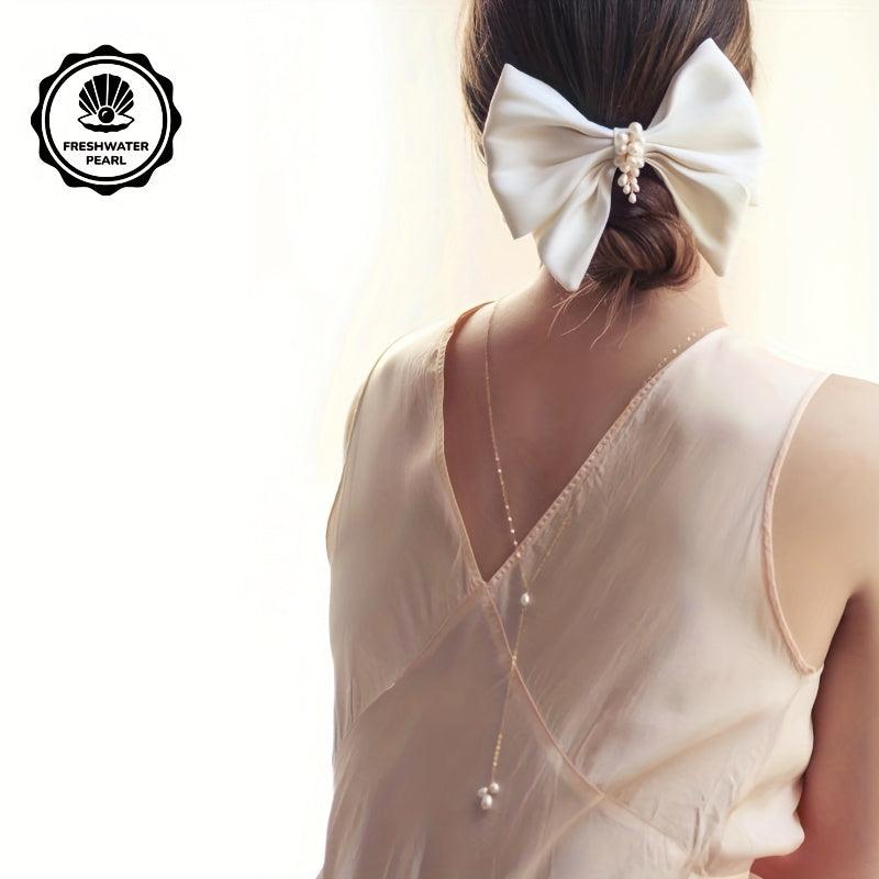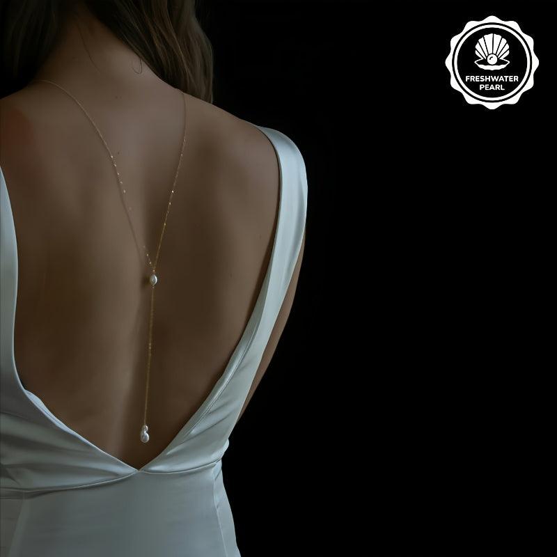 Perfect for weddings and parties, this long back chain features 3 rice beads and natural pearl dangle, adding a touch of elegance and sophistication to your outfit.