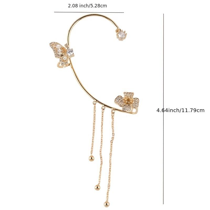 Add a touch of elegance to your look with this beautiful butterfly stud earrings and chain ear clip set. Made of high-quality materials, these earrings are perfect for any occasion.