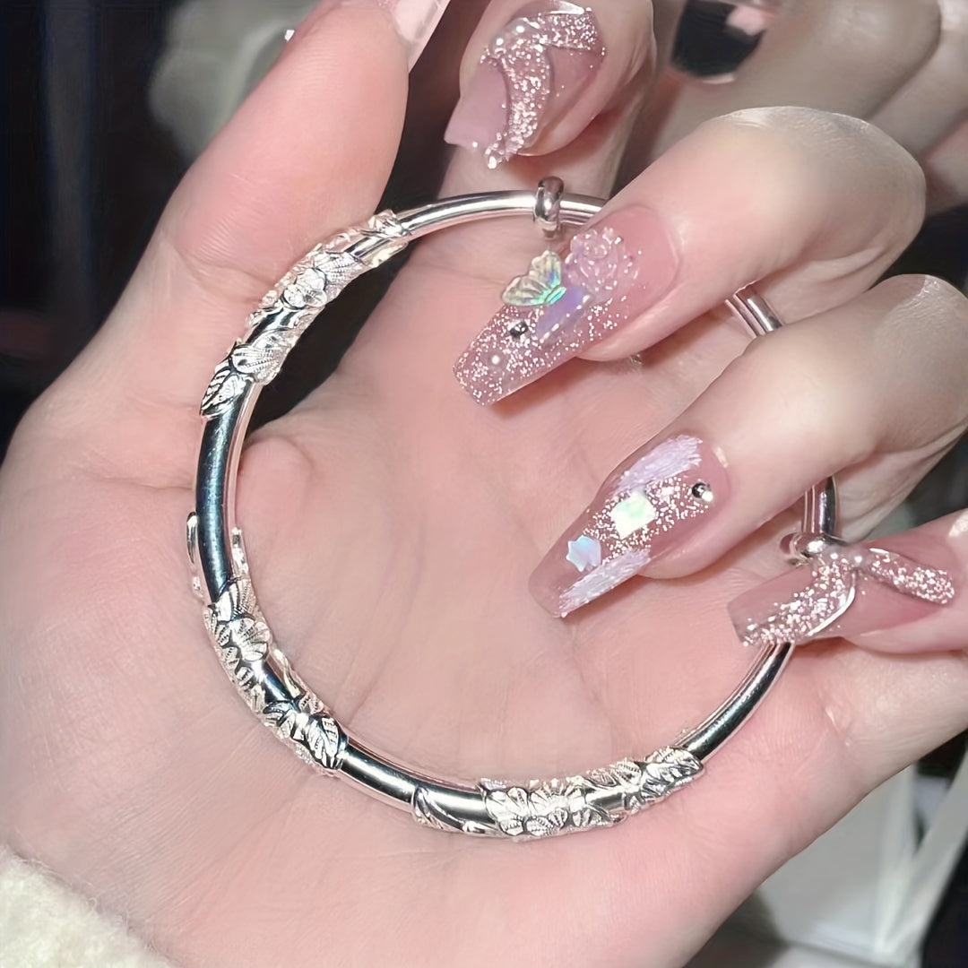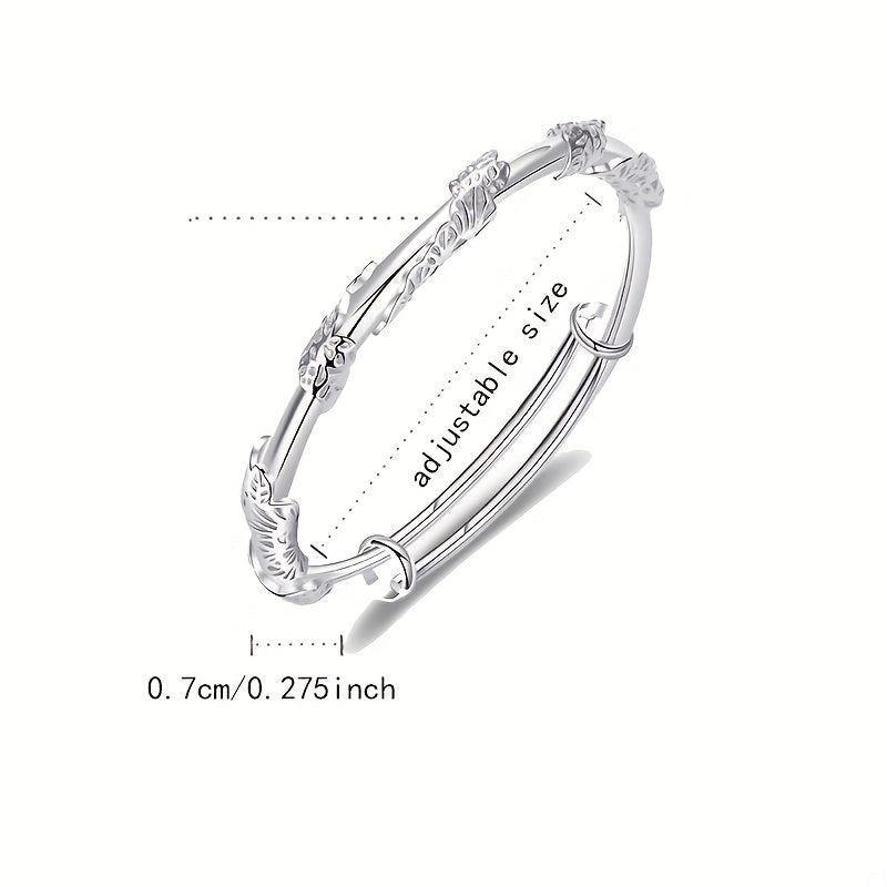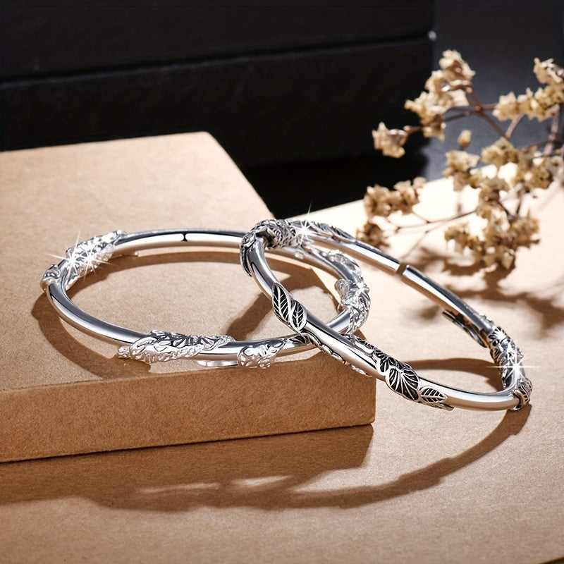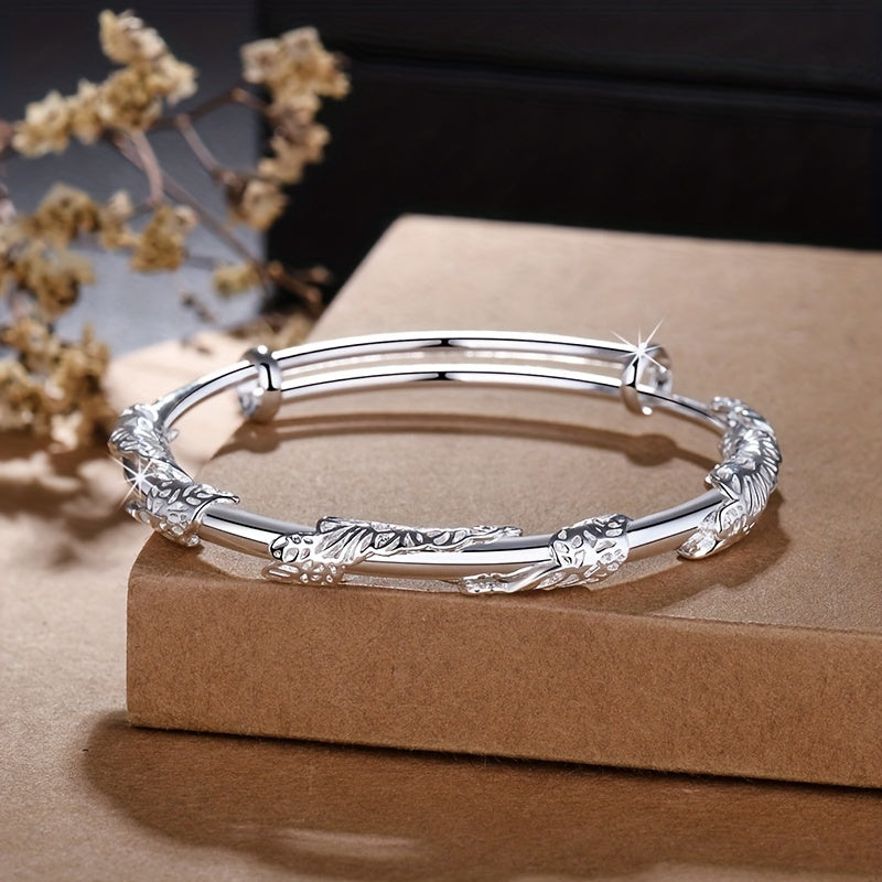 This stunning bangle bracelet is adorned with beautifully carved floral patterns. A perfect accessory to elevate any outfit. Ideal gift for mothers.