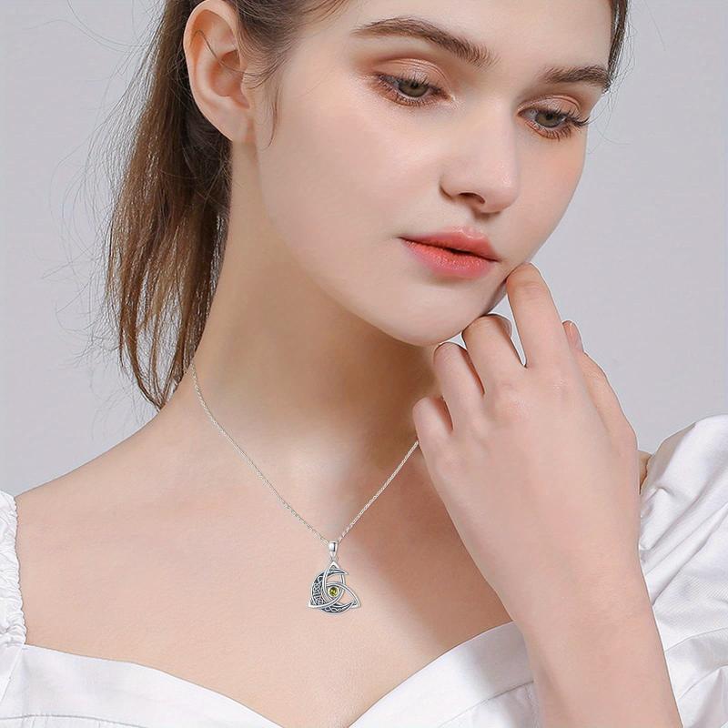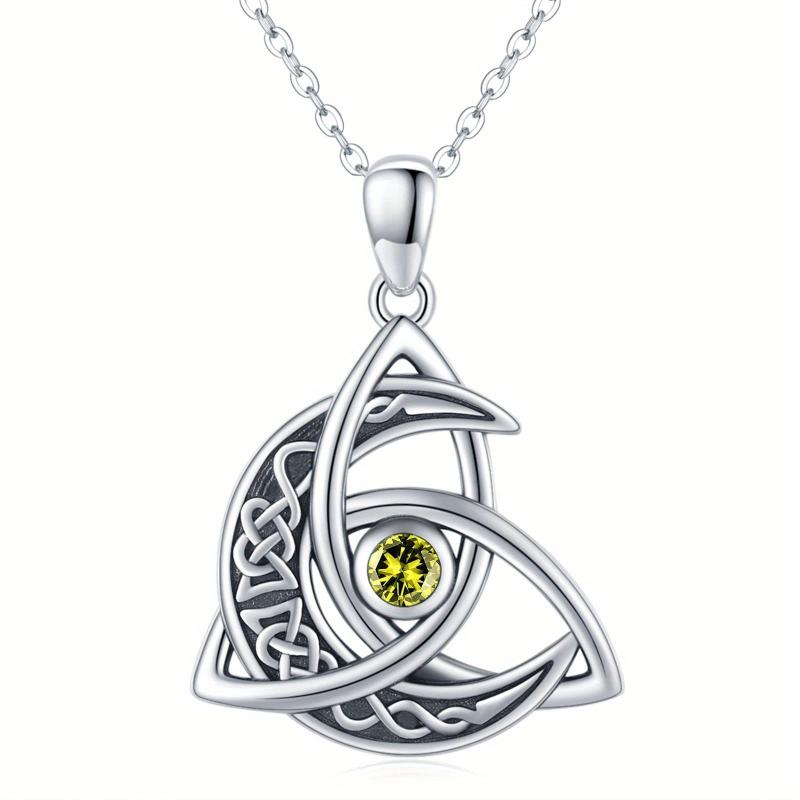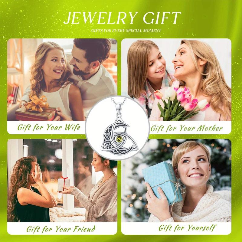 This 925 sterling silver necklace features a Celtic knot pendant with an August birthstone. The crescent moon design makes it perfect for birthdays or as a gift for women or girlfriends.