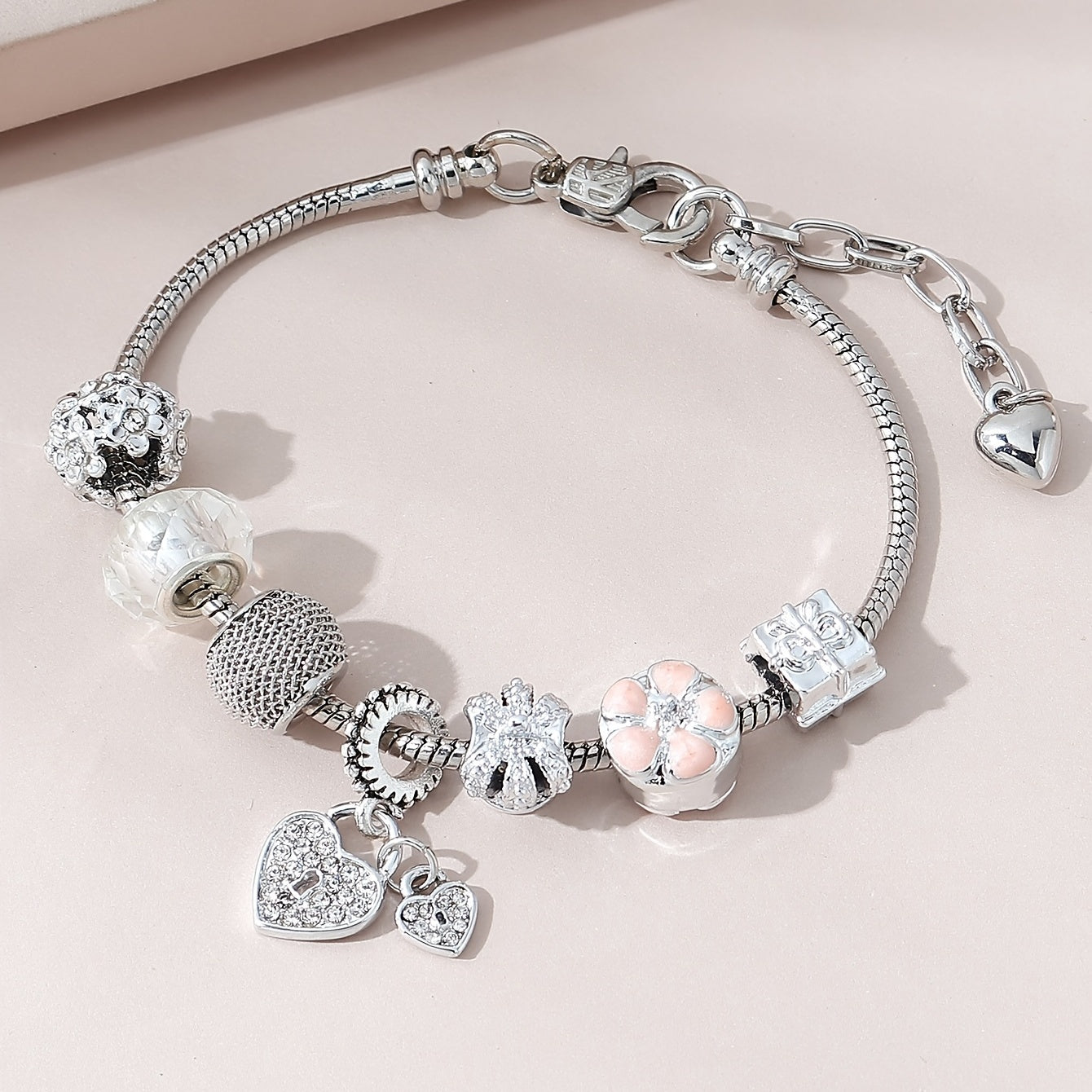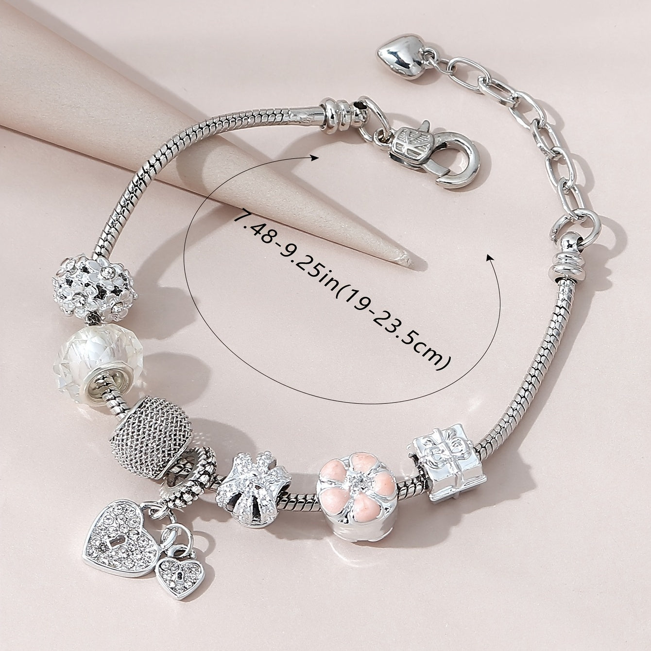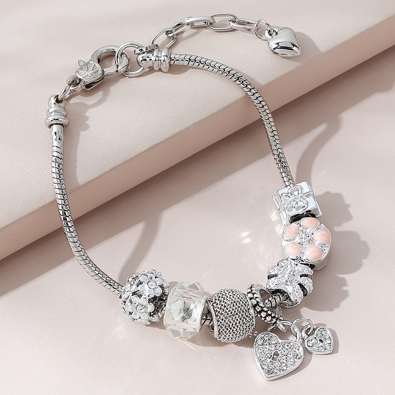 Elevate your style with this beaded charm bracelet featuring a stunning pattern of flowers and crown adorned with rhinestones. It's the perfect accessory for daily wear, adding a touch of sweetness to your outfit. Makes a great gift for women.