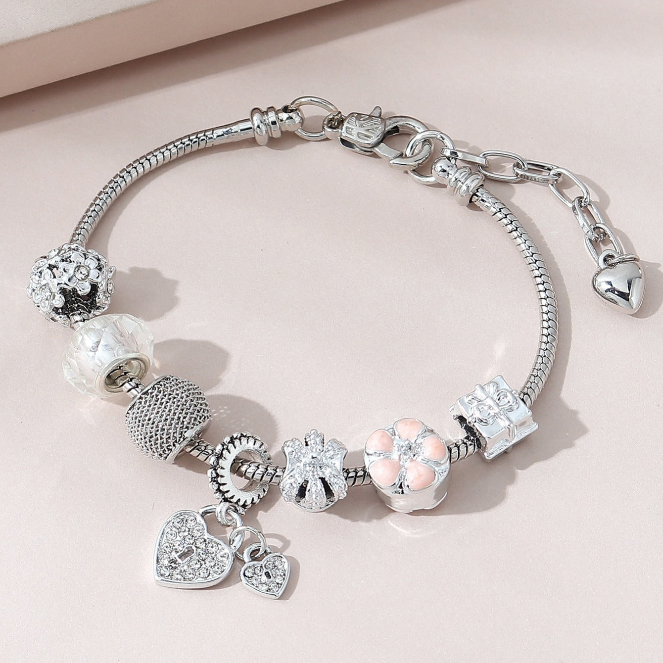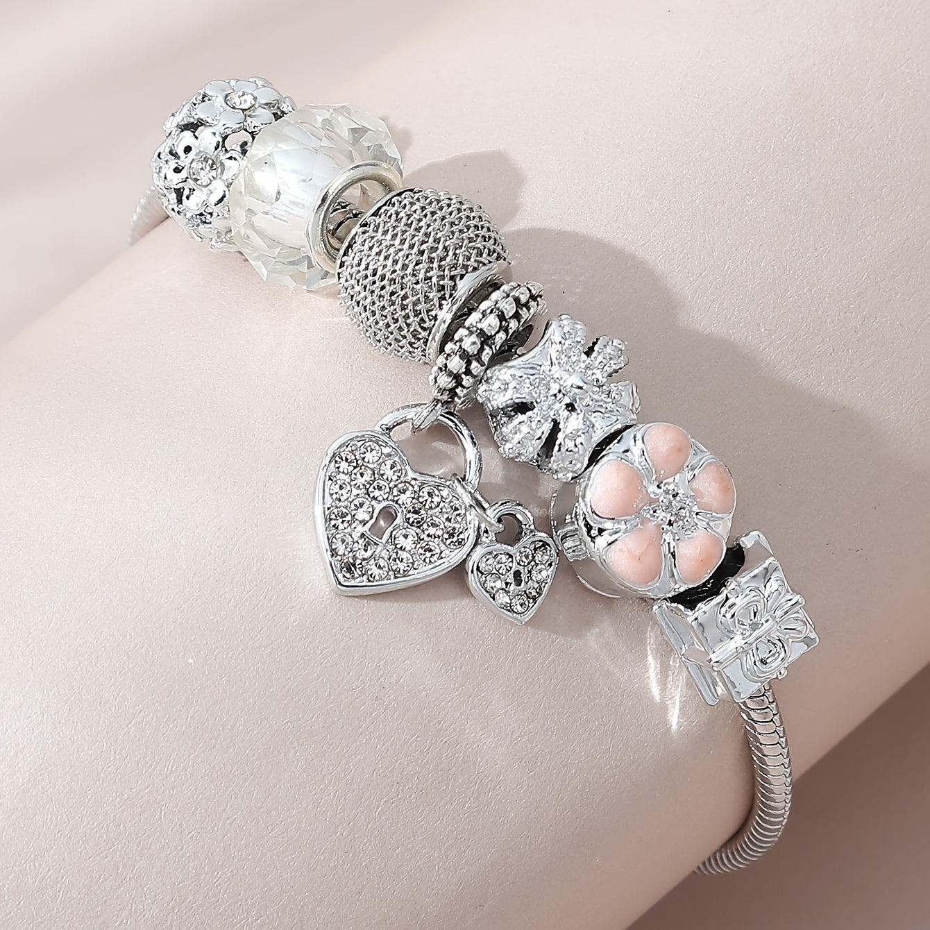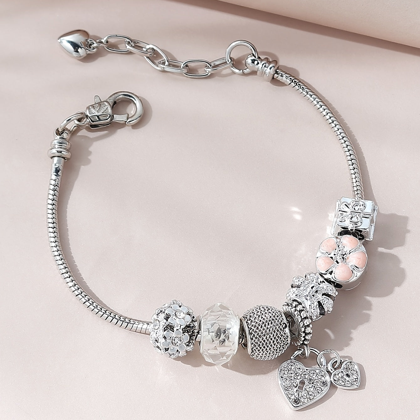 Elevate your style with this beaded charm bracelet featuring a stunning pattern of flowers and crown adorned with rhinestones. It's the perfect accessory for daily wear, adding a touch of sweetness to your outfit. Makes a great gift for women.