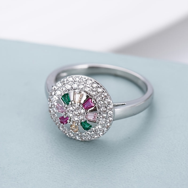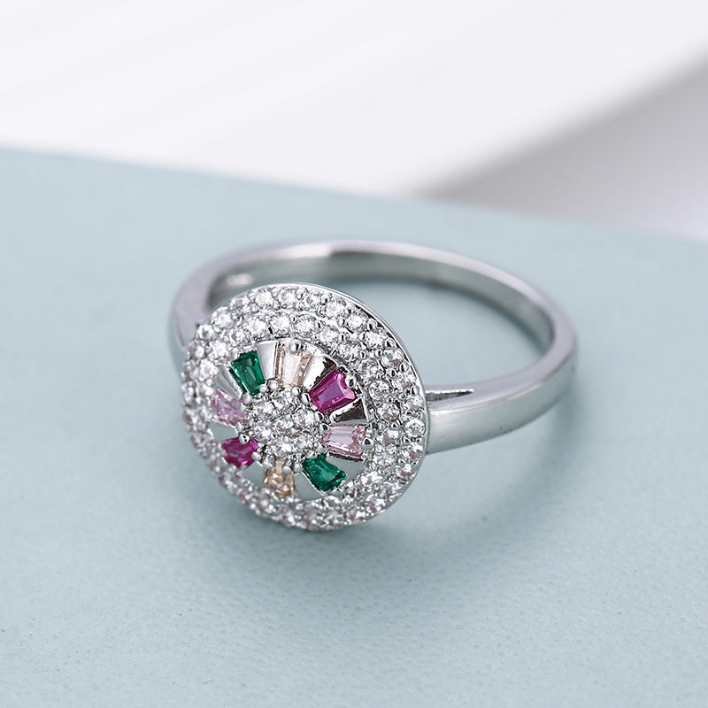 Add a festive touch to your look with this colorful zircon ring. Perfect for the holiday season and beyond.