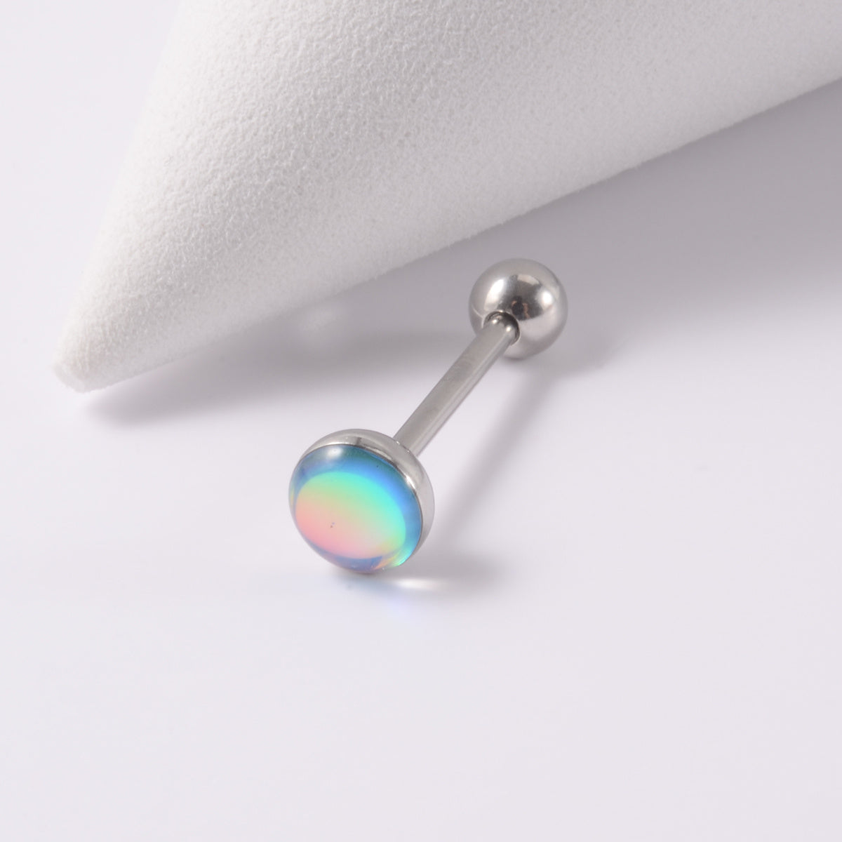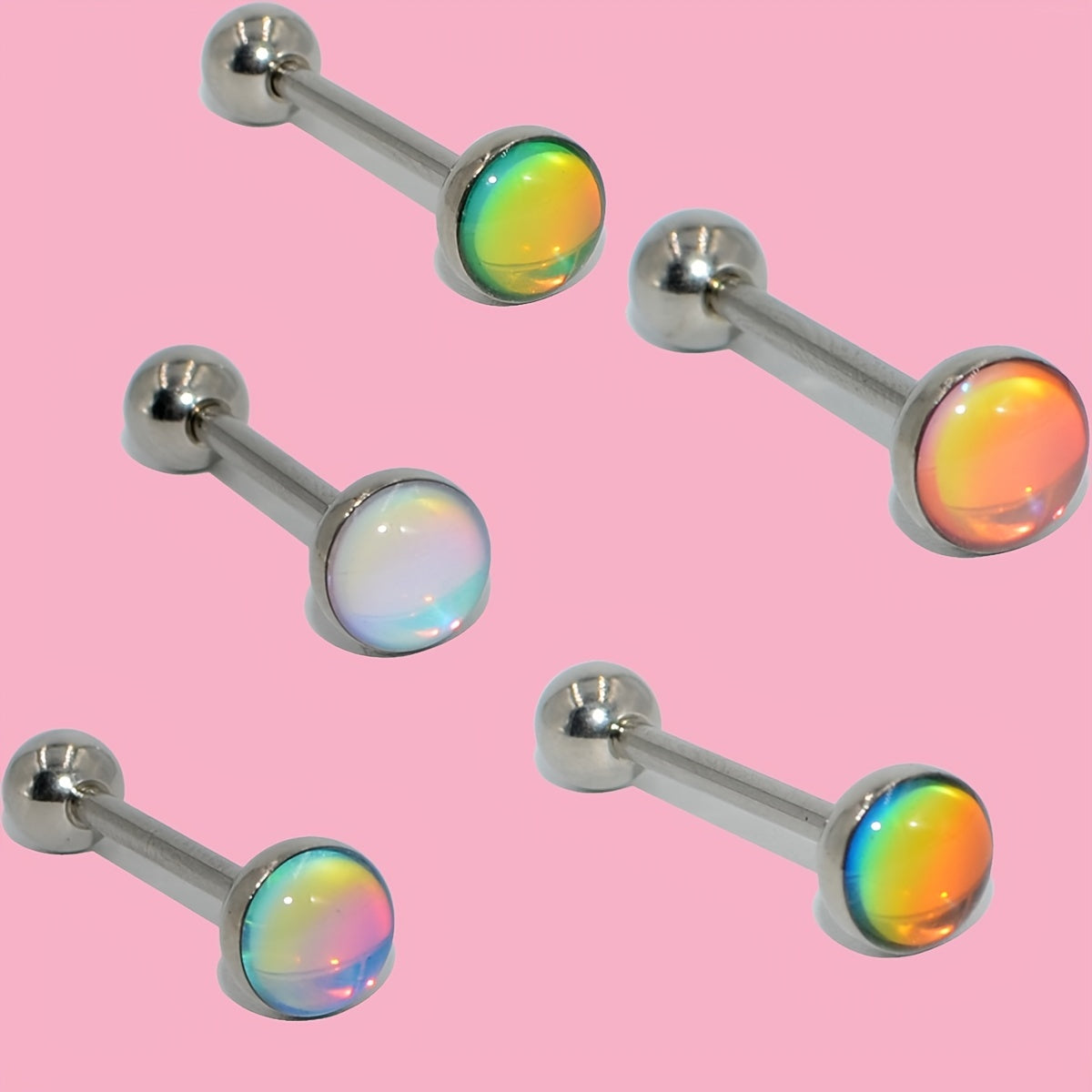 Colorful Gemstone Stainless Steel Tongue Barbell Ring Y2K Style