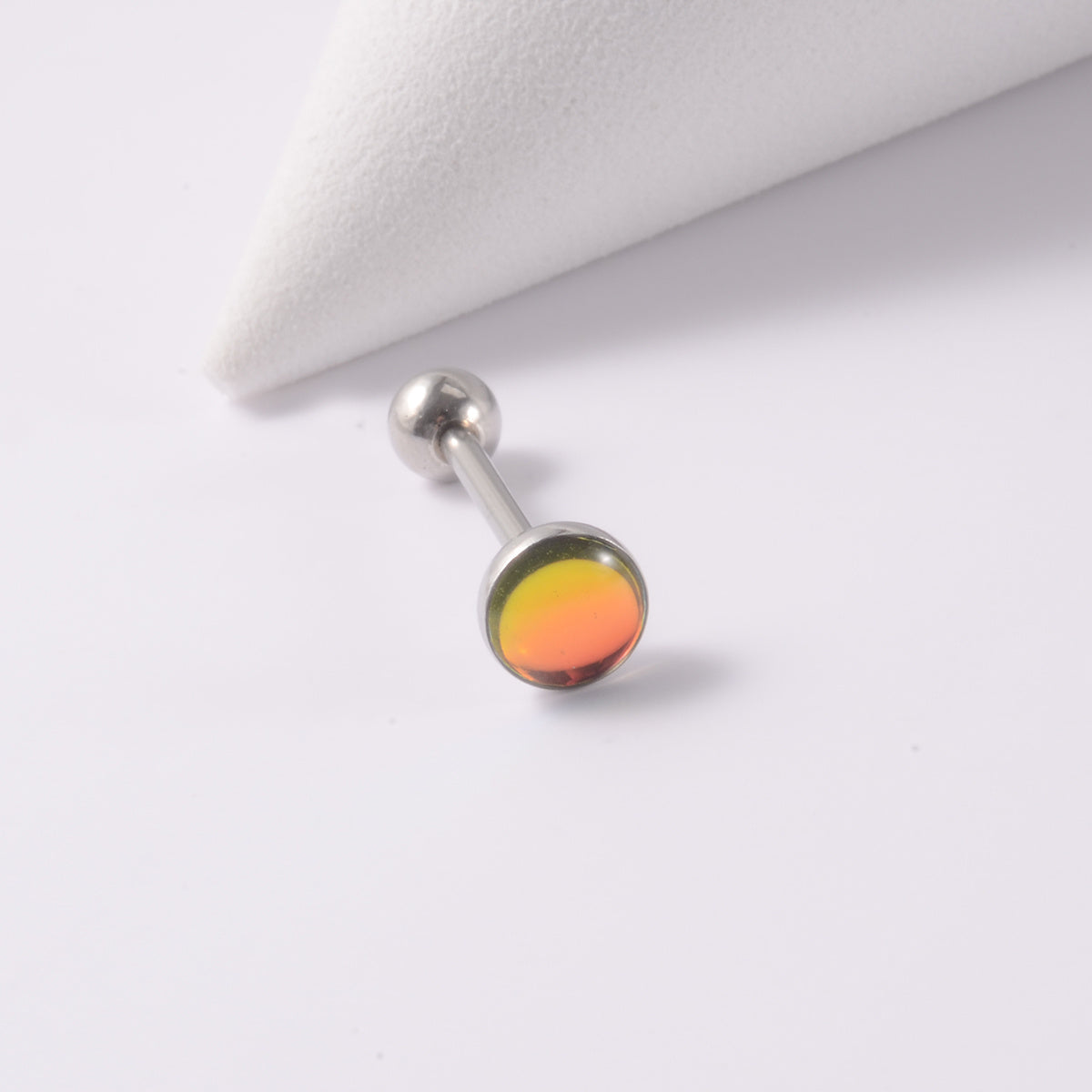 Add a pop of color to your body piercing with this stainless steel tongue barbell ring featuring colorful synthetic gemstones. This piece of body jewelry is perfect for those who love the Y2K style!