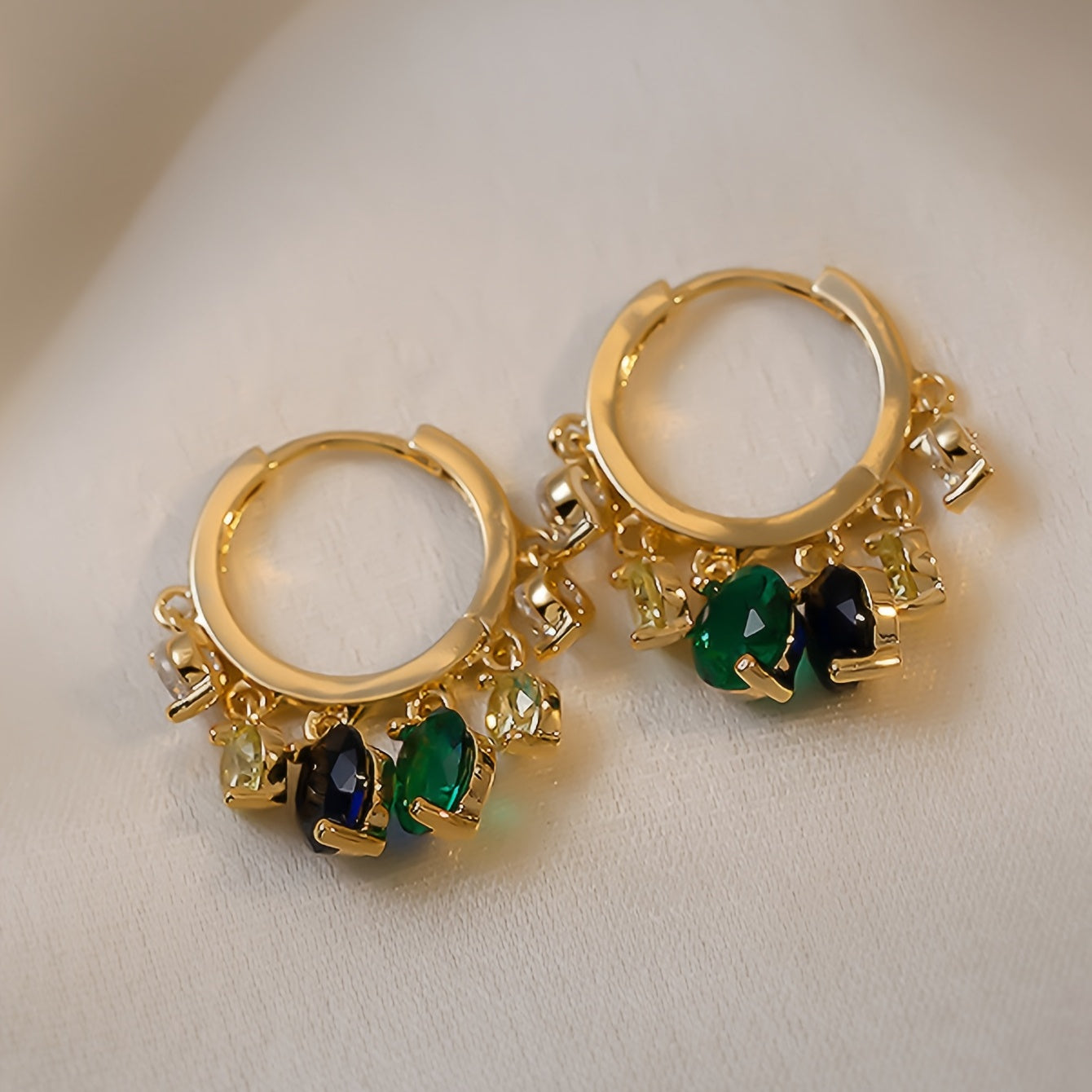 Add a pop of color to your look with these stylish and versatile earrings. Perfect for a retro-inspired touch of glamour.