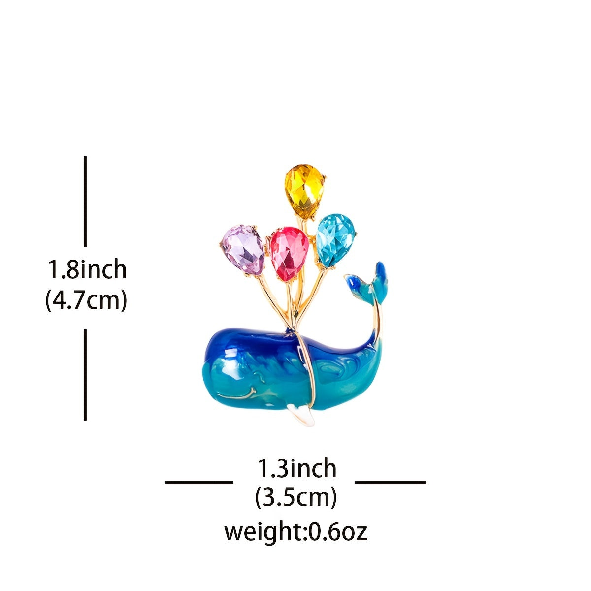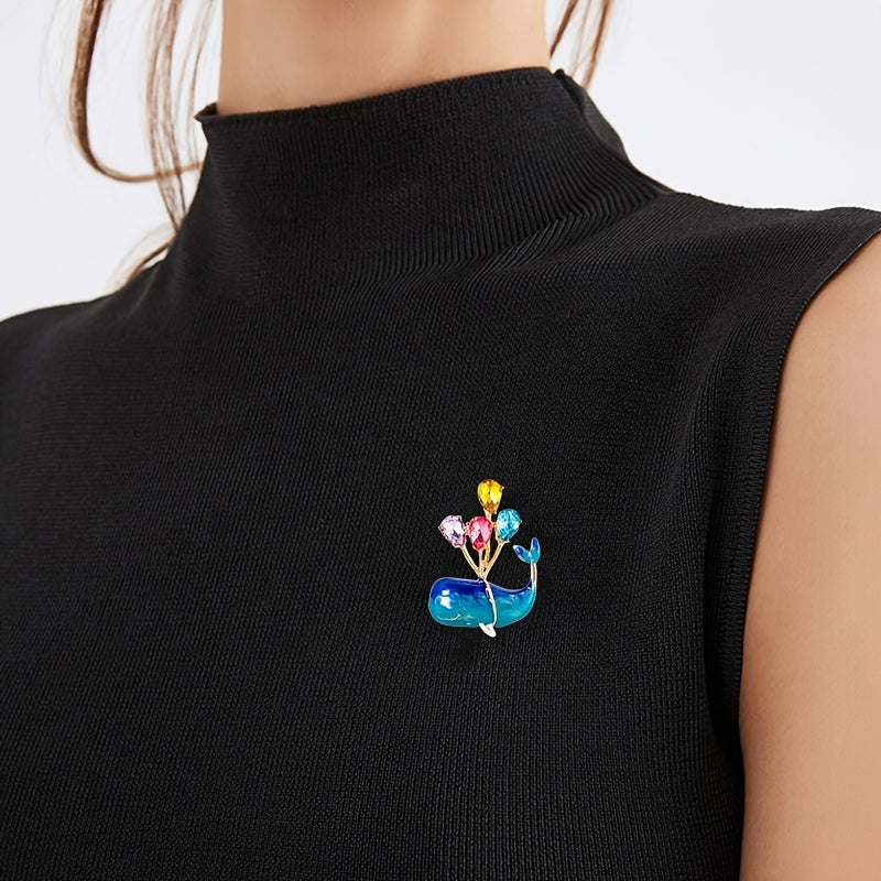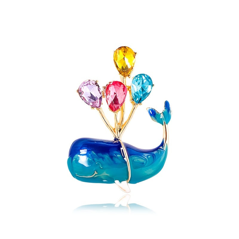 This stunning whale brooch features a balloon shape design with colorful water drop shape zircon inlays. Perfect accessory to add a touch of elegance to any outfit.
