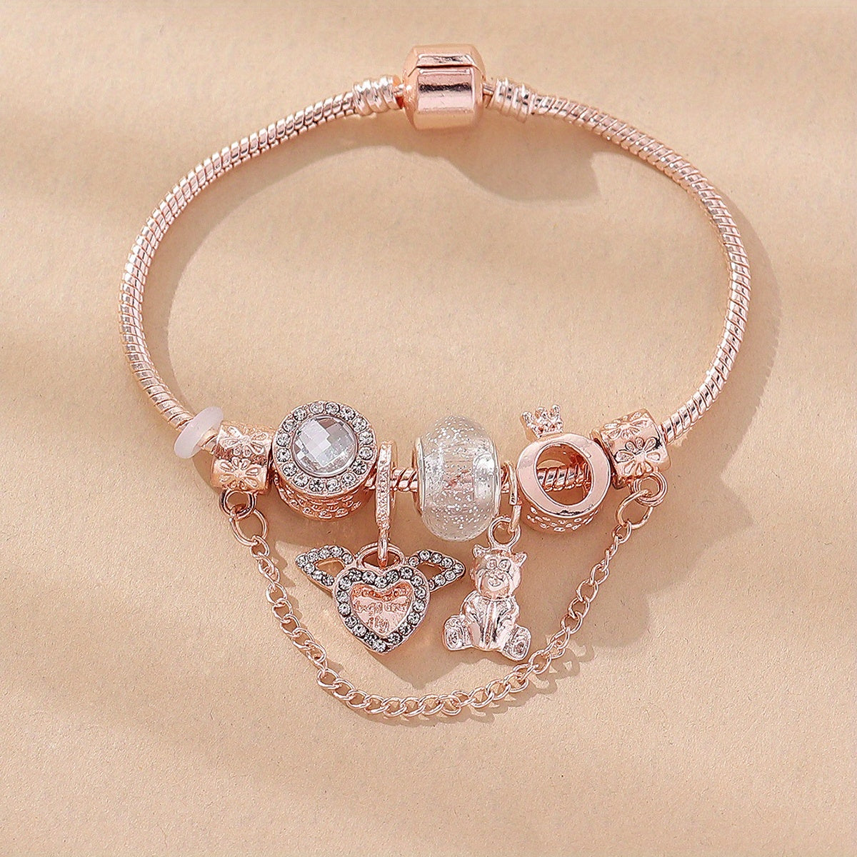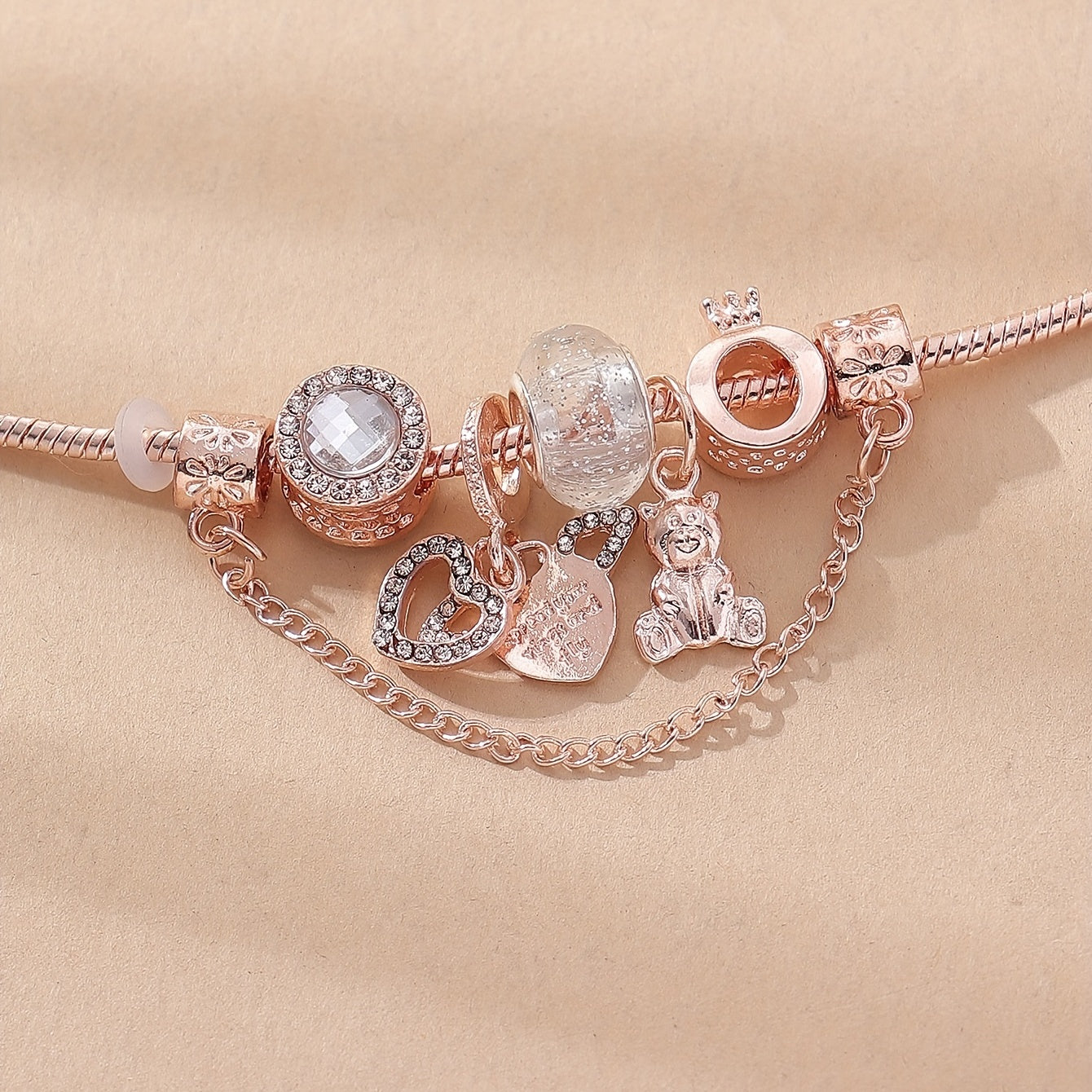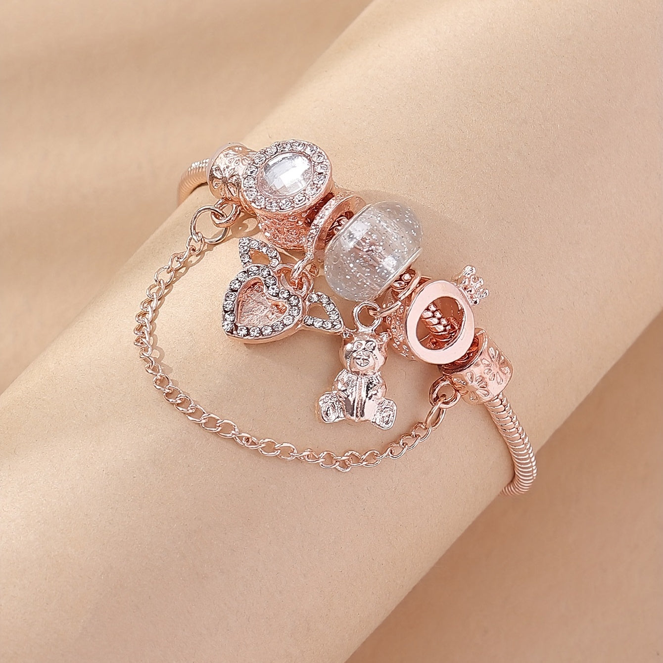 Copper Chain Beaded Bracelet Inlaid Rhinestones Hand Jewelry