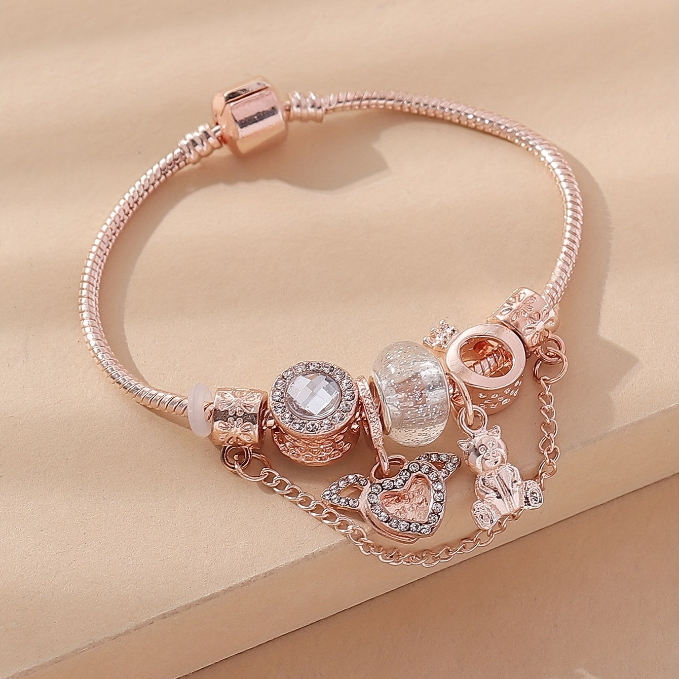 • Beautiful copper chain bracelet with inlaid rhinestones