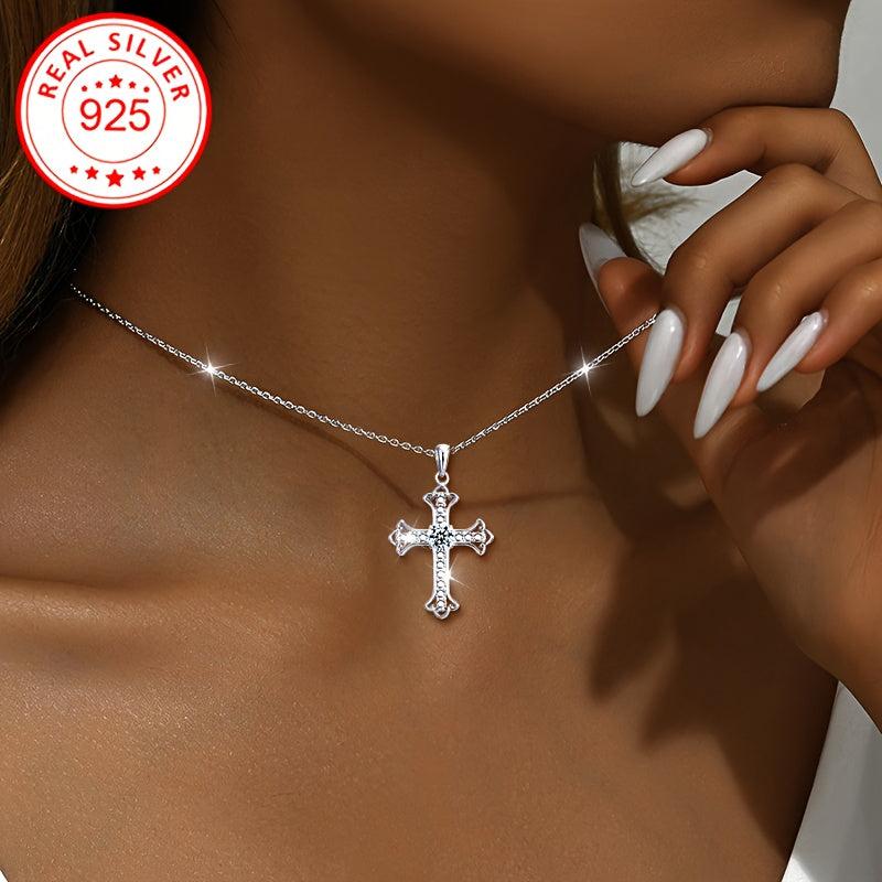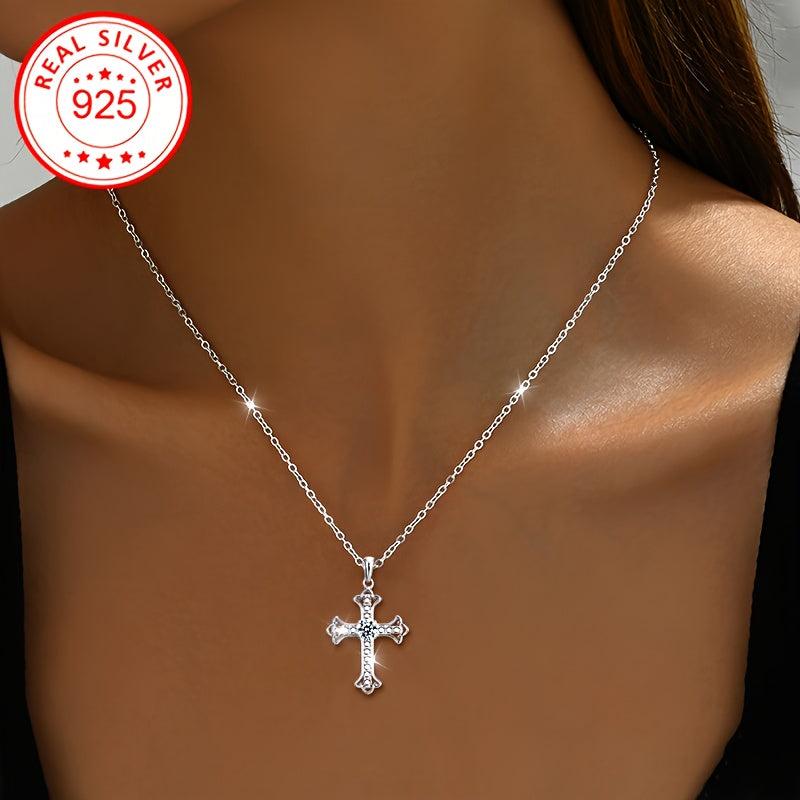 Elevate your style with this Y2K-inspired cross pendant necklace featuring inlaid cubic zirconia. Perfect for holiday parties or hip hop looks. Crafted from genuine S925 silver for a luxurious touch.