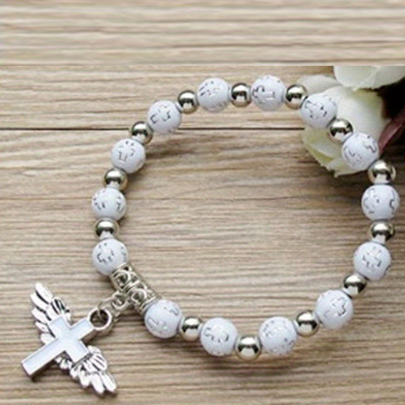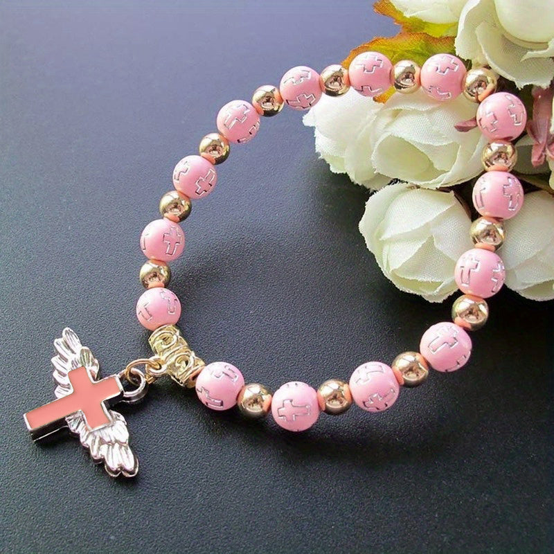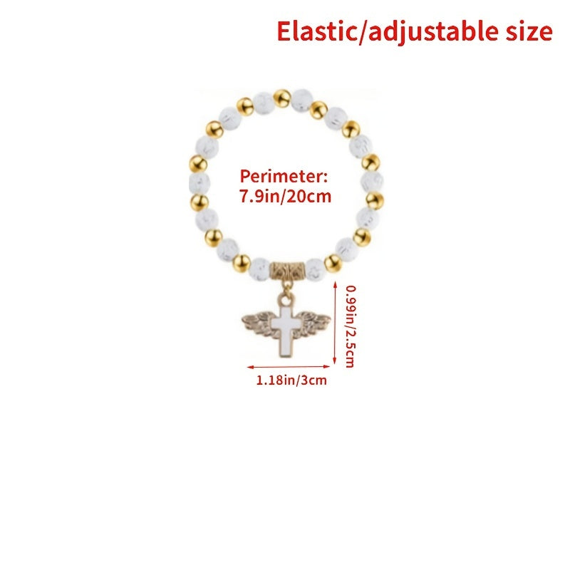 Cross Wings Beaded Bracelet Acrylic Beads Elastic Hand Jewelry