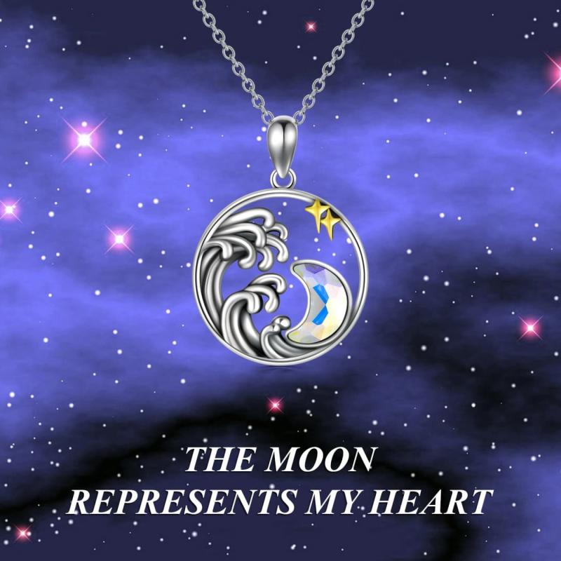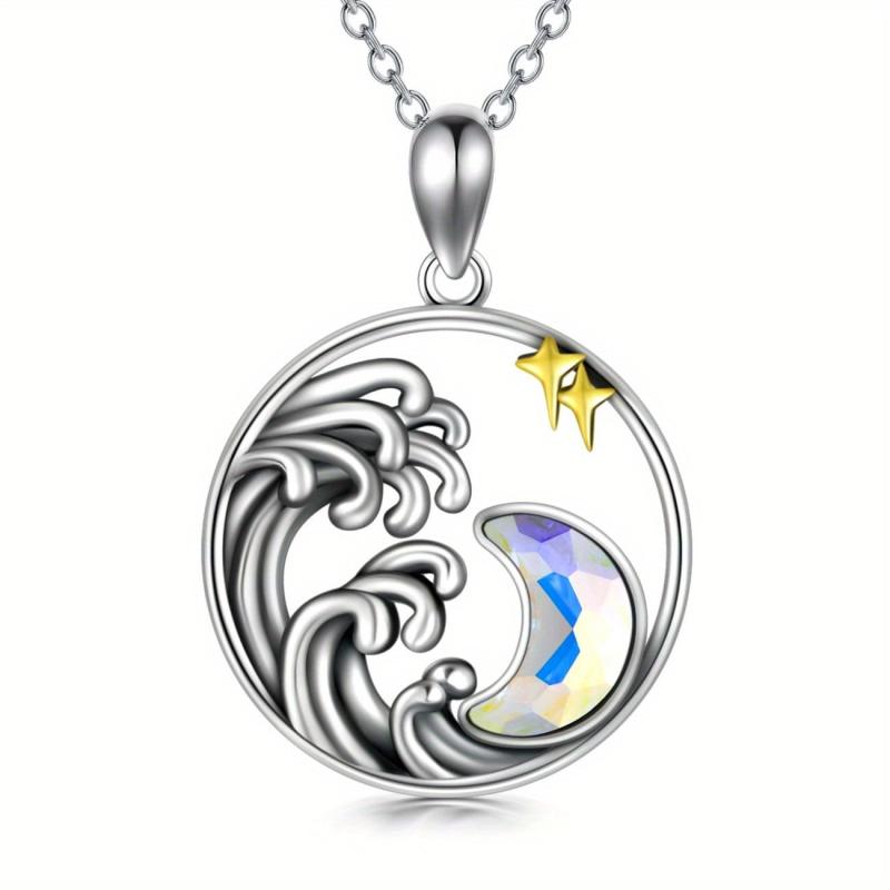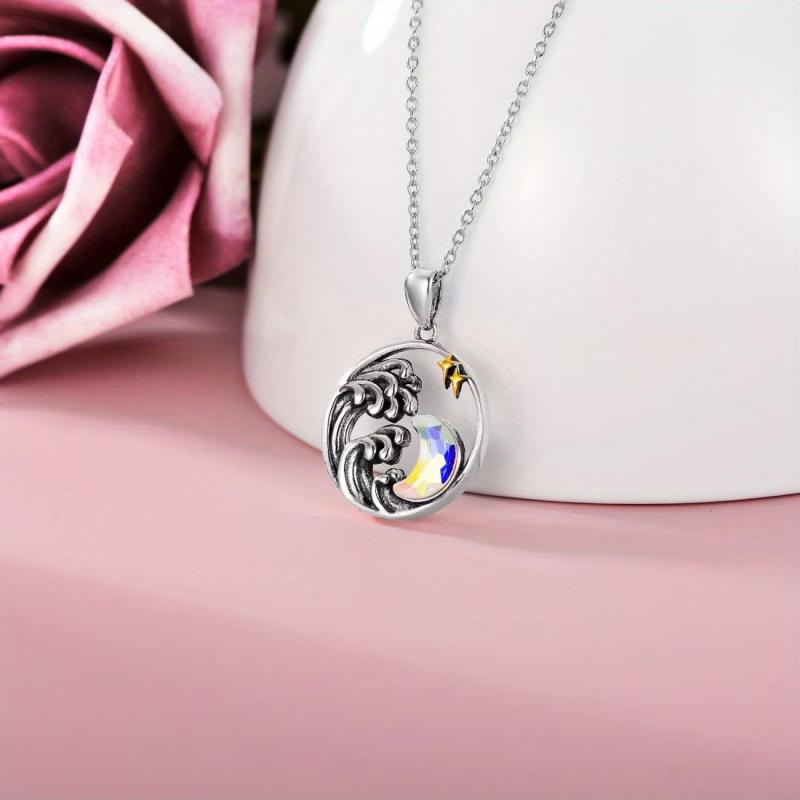 This stunning necklace features a crystal crescent moon pendant with sparkling Aurora Borealis accents. A perfect gift for women who love celestial jewelry.