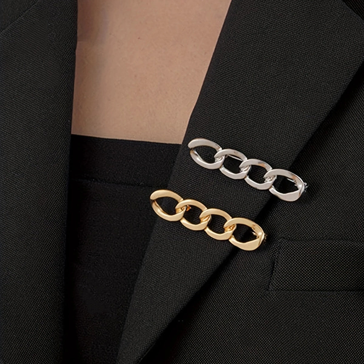 Add a touch of style to your jacket with this versatile Cuban chain brooch pin. It is a fashionable accessory that complements various outfits.