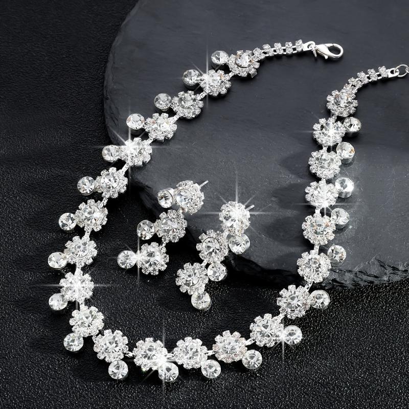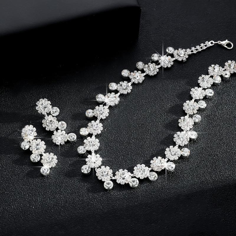 CZ Floral Sunset Necklace & Earring Set for Weddings