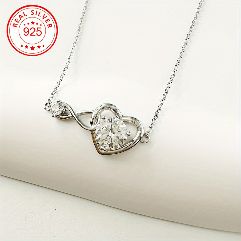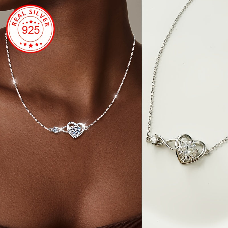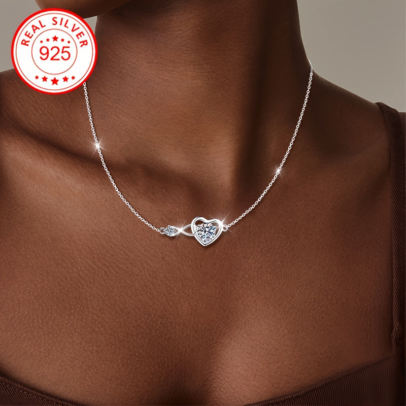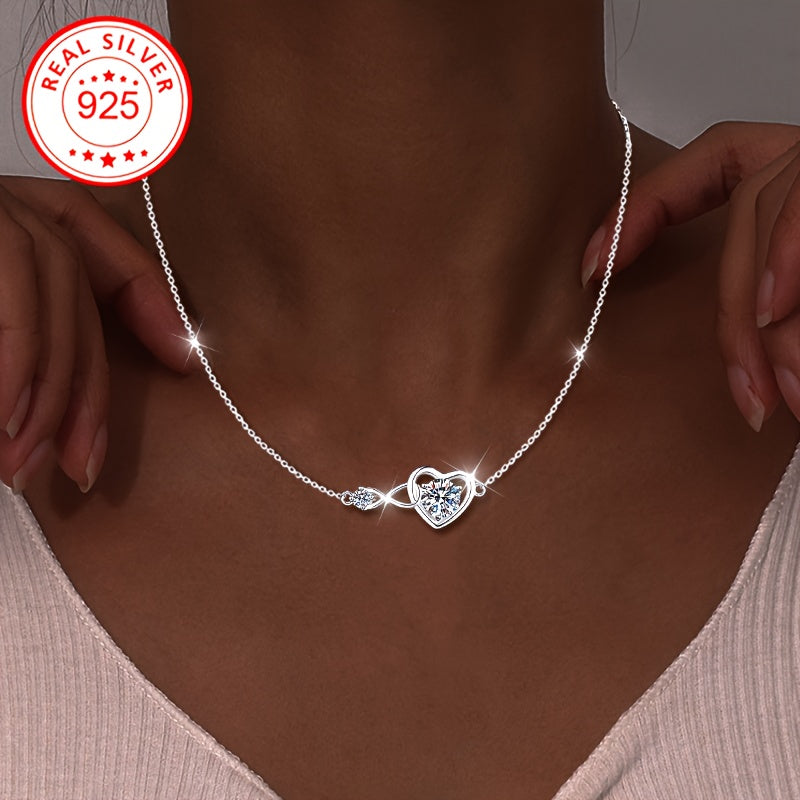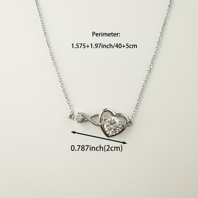 Elevate your style with this stunning pendant necklace featuring a heart and infinity symbol inlaid with Cubic Zirconia on a high-quality S925 silver chain.