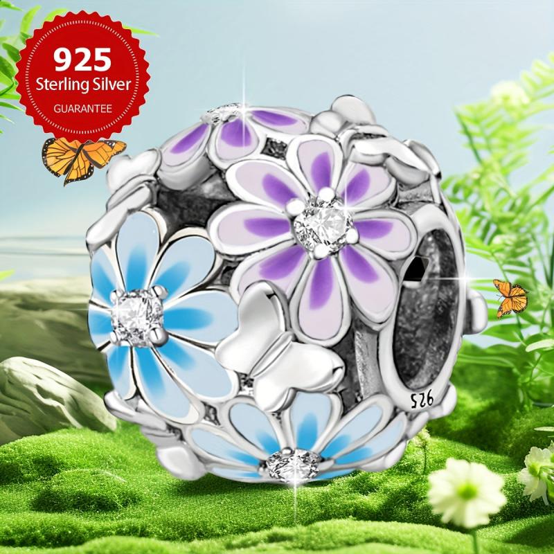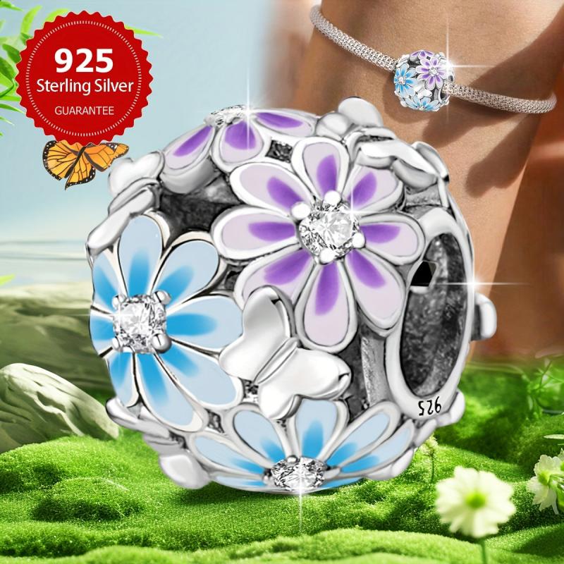 This elegant set features a daisy butterfly beaded pendant bracelet and necklace accessories made of s925 pure silver. It is perfect for women's jewelry making and adds a touch of sophistication.