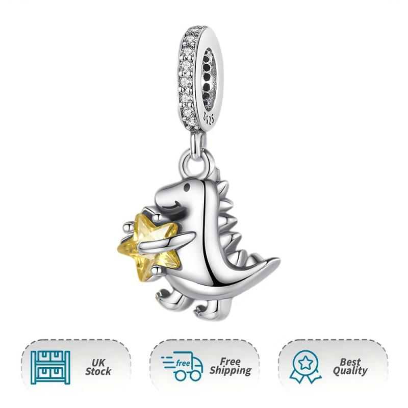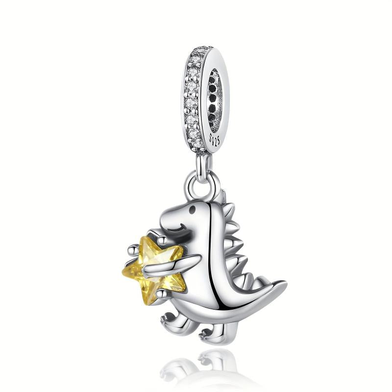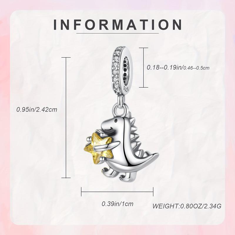 Add a touch of whimsy to your jewelry collection with this adorable dinosaur charm pendant. Made of high-quality 925 sterling silver, this little dino is holding a yellow pentagram. Perfect for holiday DIY projects or as a gift for a girl.