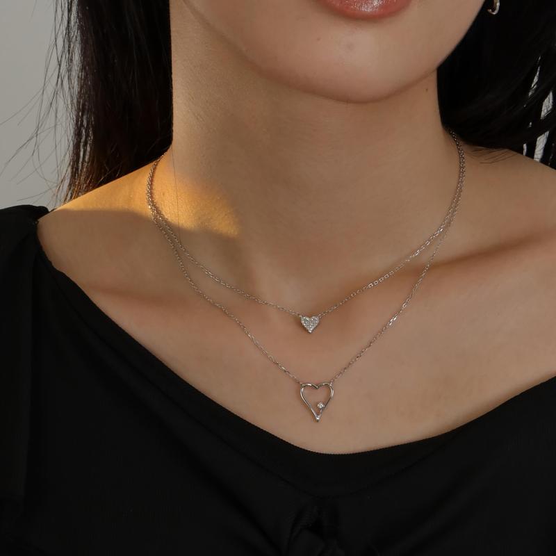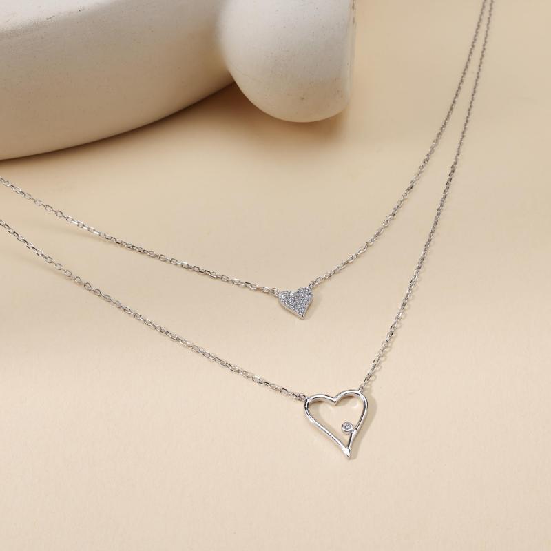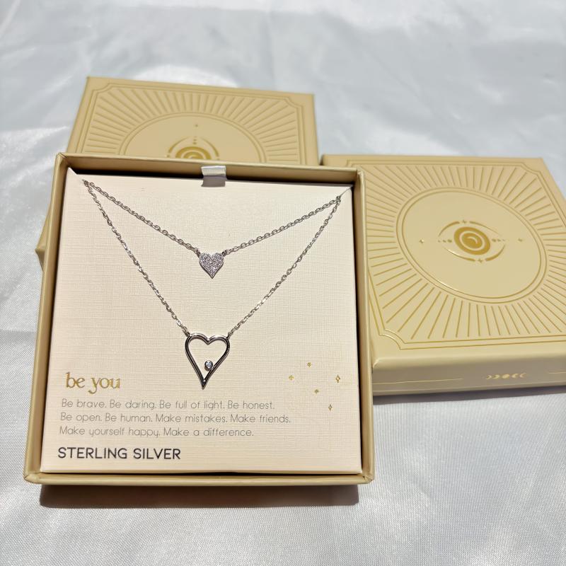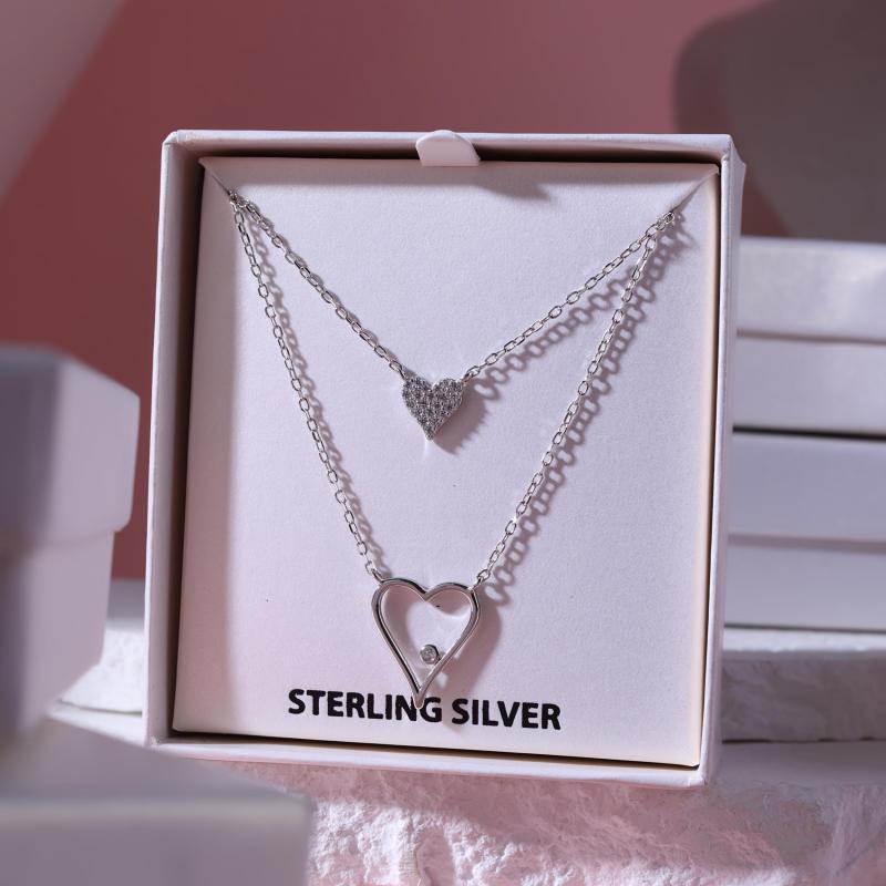 This elegant double layered necklace features a charming double heart design, crafted from high-quality sterling silver. A perfect gift for someone special.
