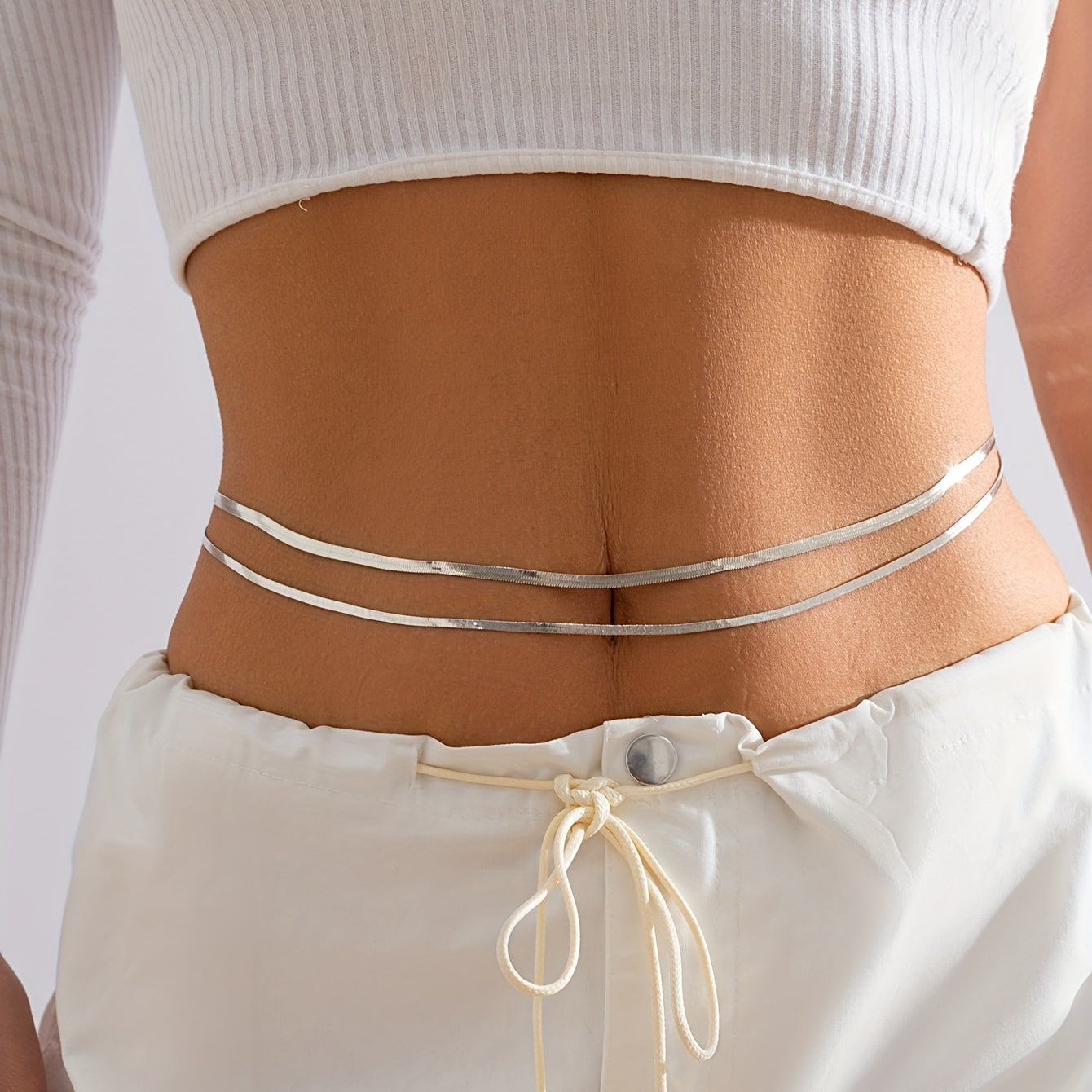 Elevate your summer beach look with this stylish double layer flat snake waist chain. Perfect body chain jewelry decoration for women and girls.