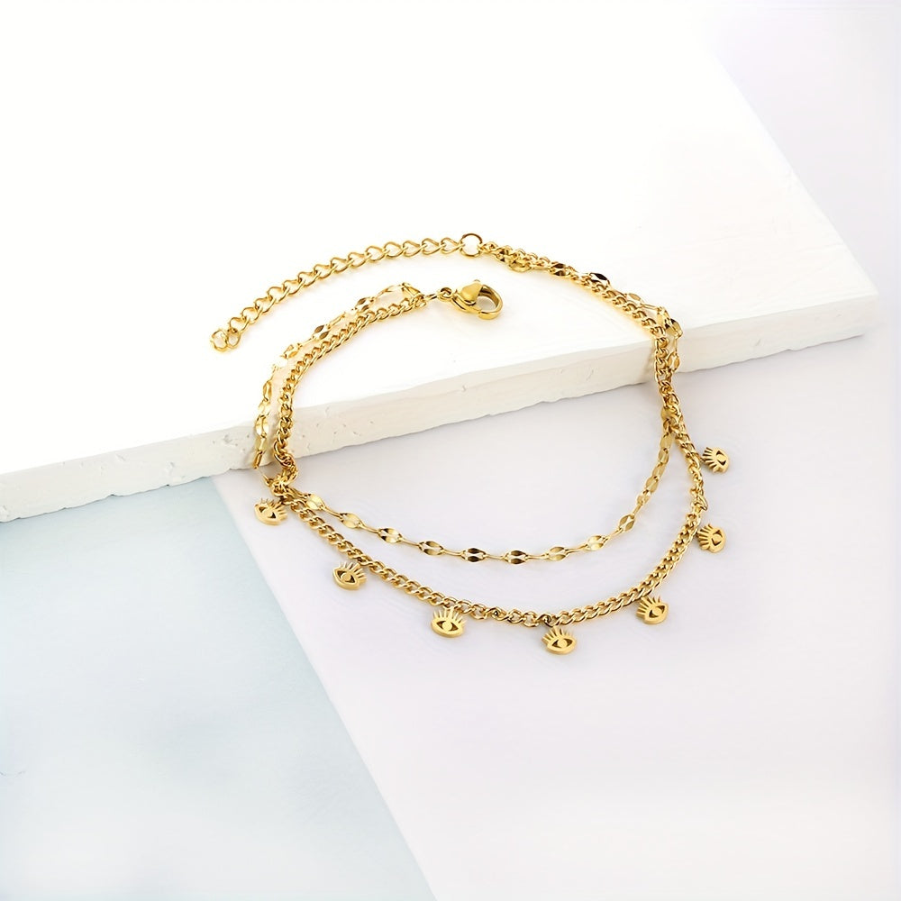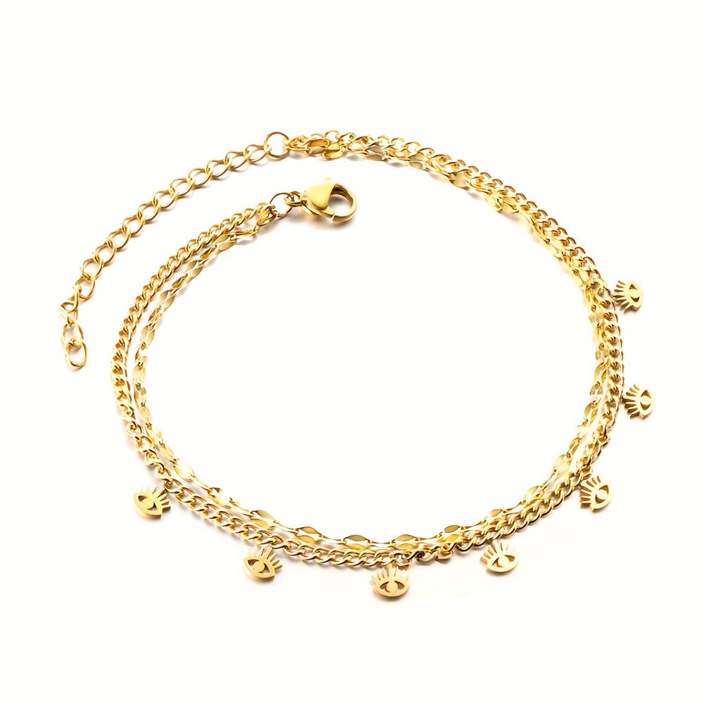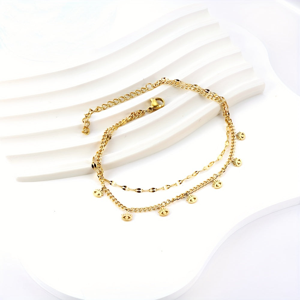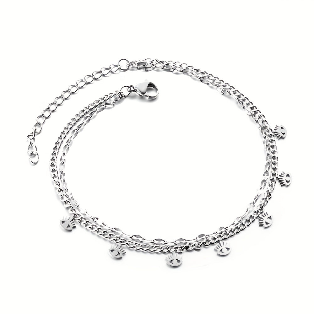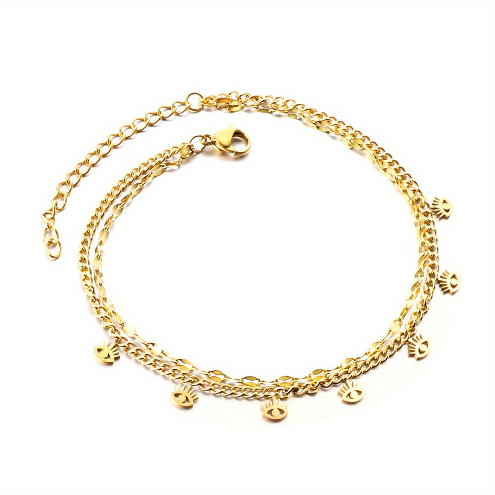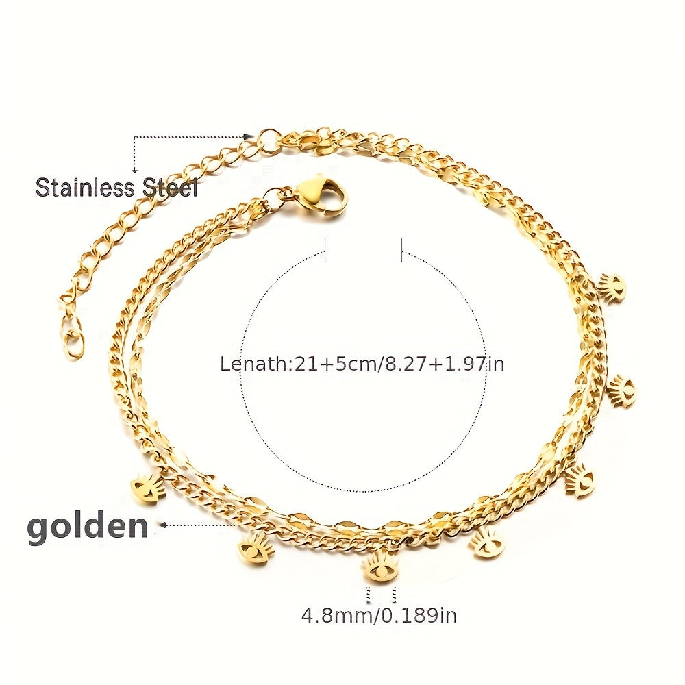 This anklet features double layers thin chains with an eye shape tassel pendant, perfect for adding a vintage touch to your look.
