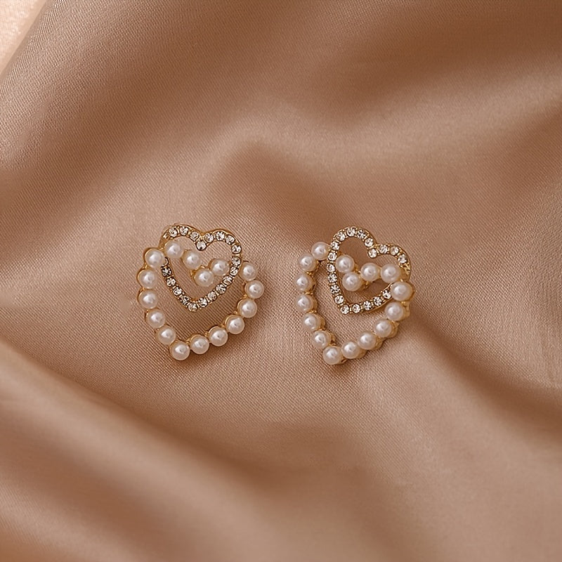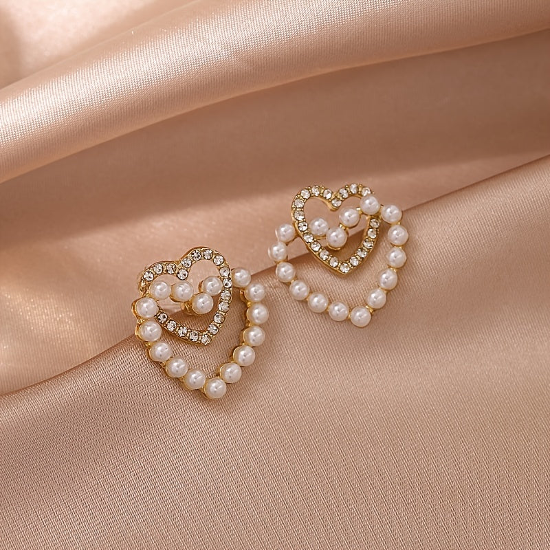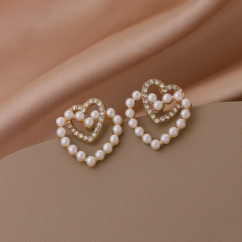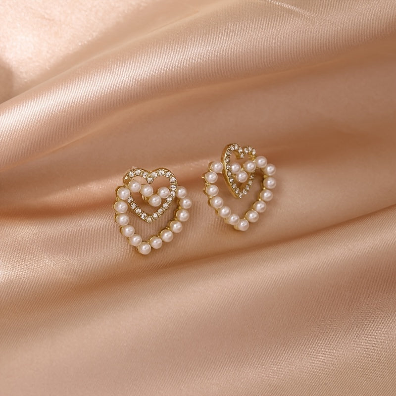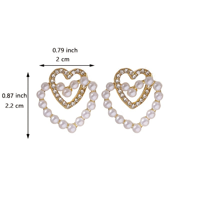 These stunning Faux Pearl Earrings feature a double love design, perfect for women and girls. They are crafted with 18K gold plating, adding a touch of elegance to any outfit.