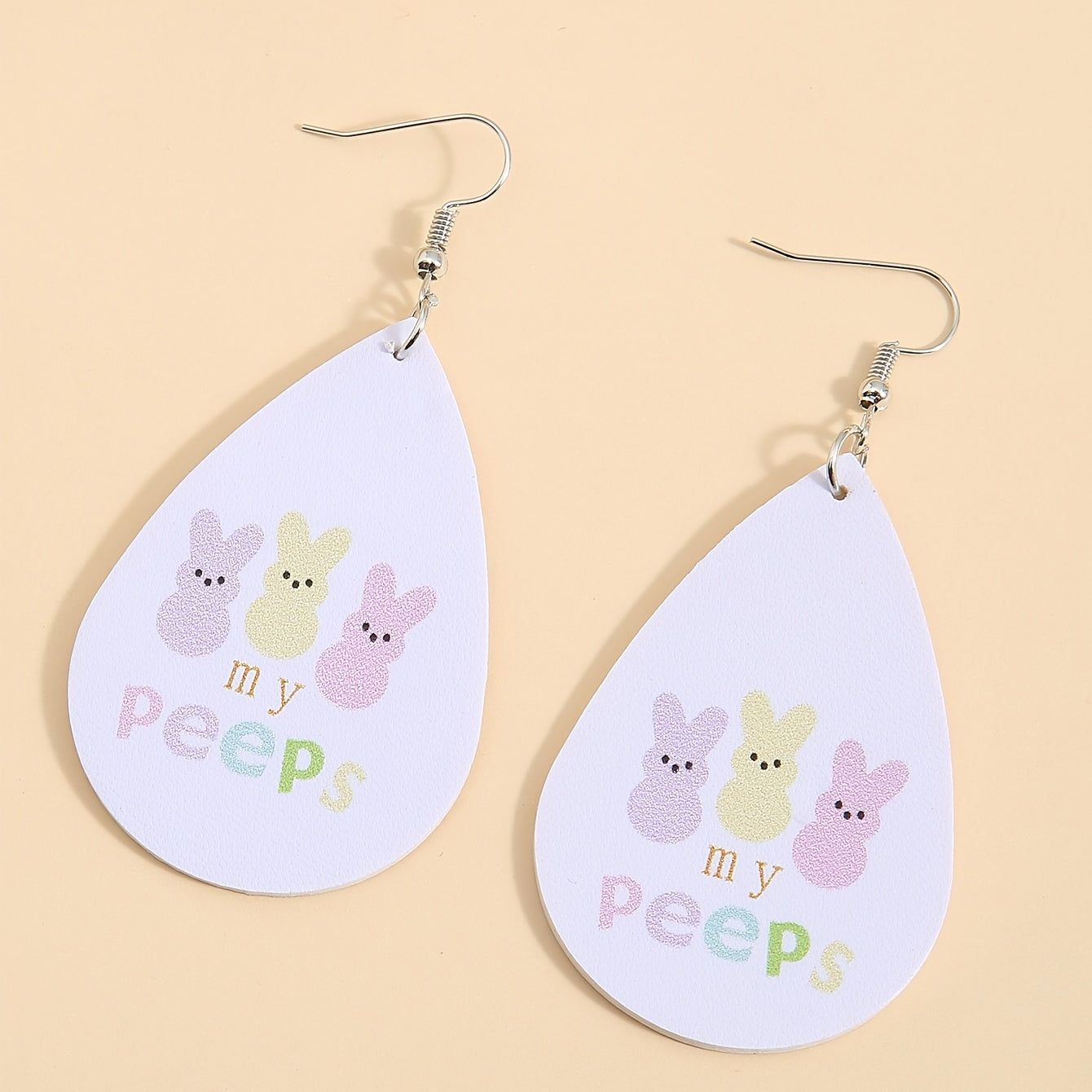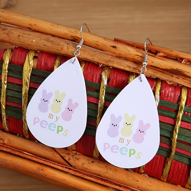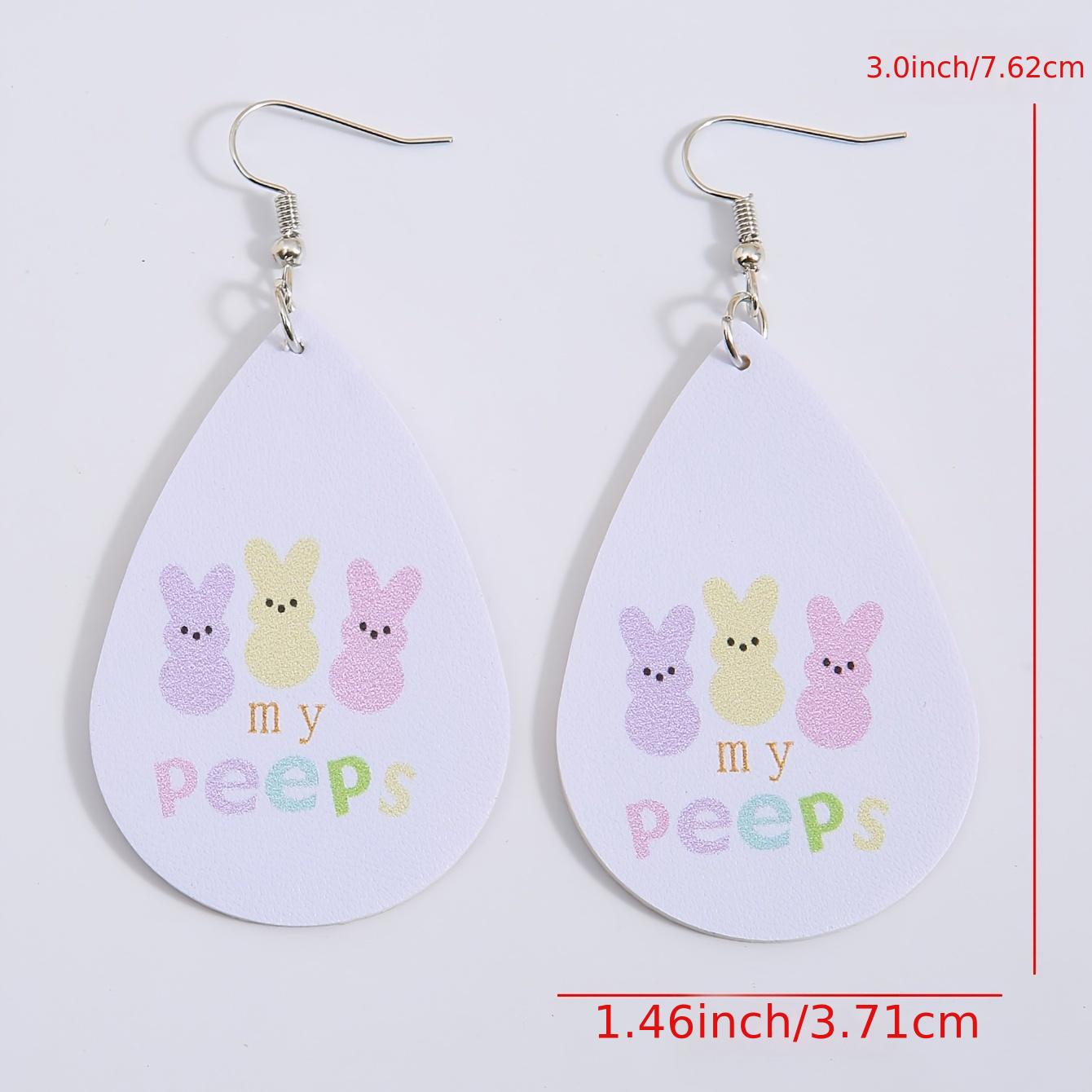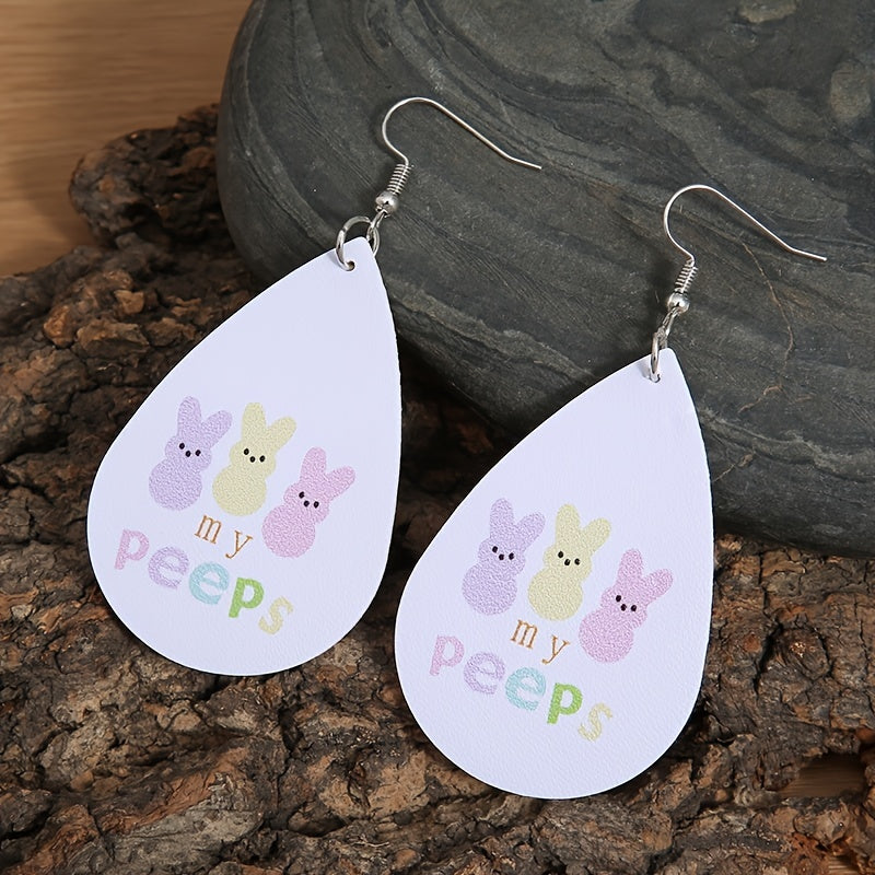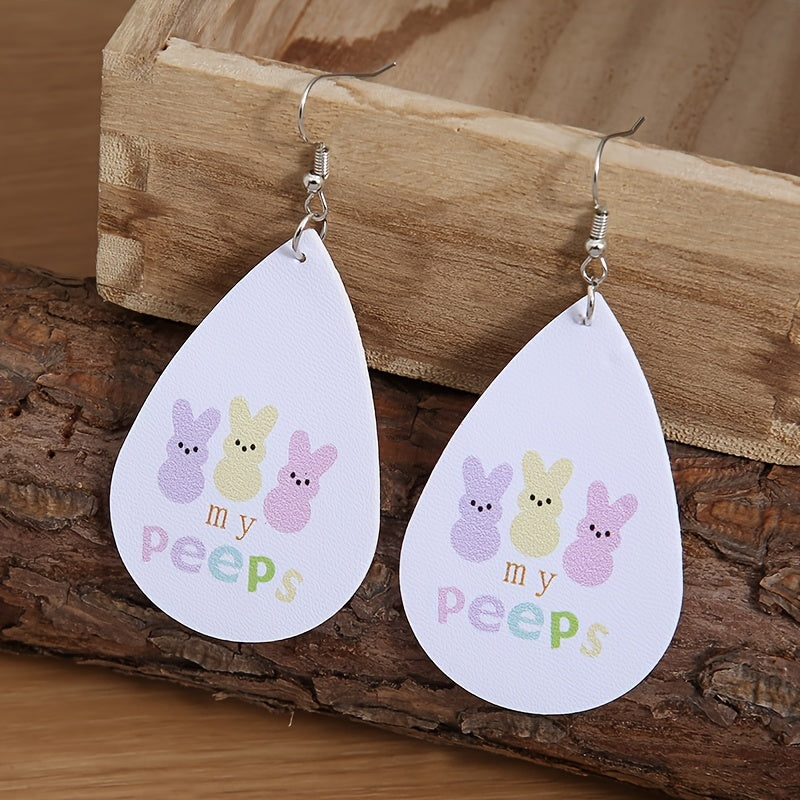 Colorful bunny print earrings perfect for Easter holiday. Made from high-quality PU leather, these earrings are a fun and stylish accessory.