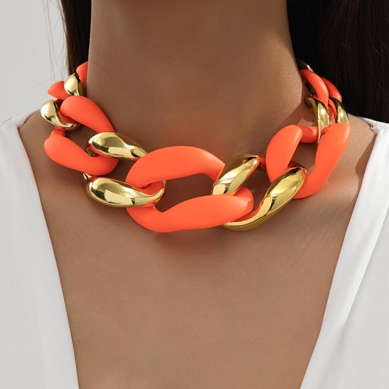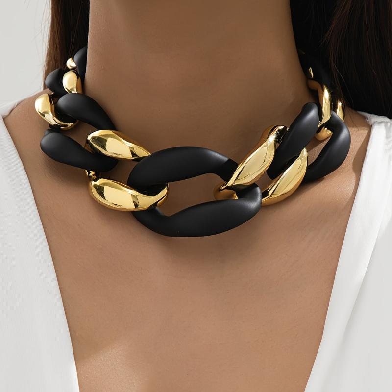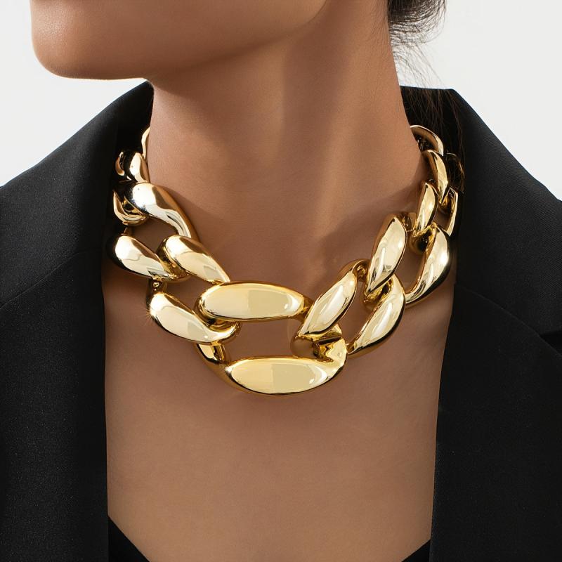 Edgy Punk Hip Hop KC Golden Acrylic Choker Necklace Statement Piece Women