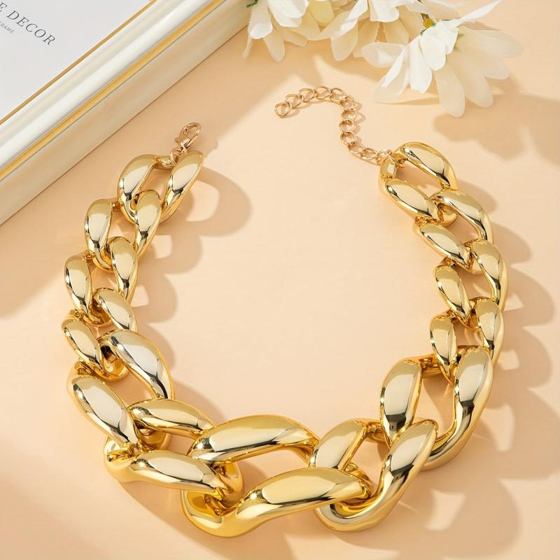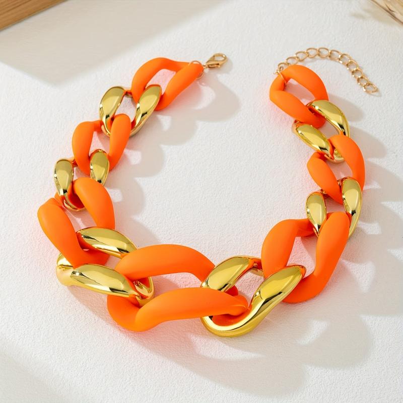 Make a bold statement with this edgy punk hip hop KC golden plated acrylic choker necklace. Perfect for everyday wear or parties, this eye-catching piece is a versatile addition to your jewelry collection. It also makes a great gift for any occasion.