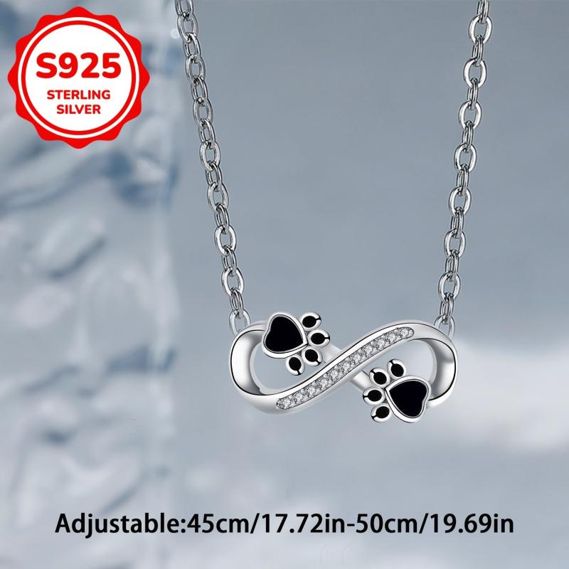 Eternal Pet Love 925 Silver Paw Print Necklace Women Adjustable Chain Memorial