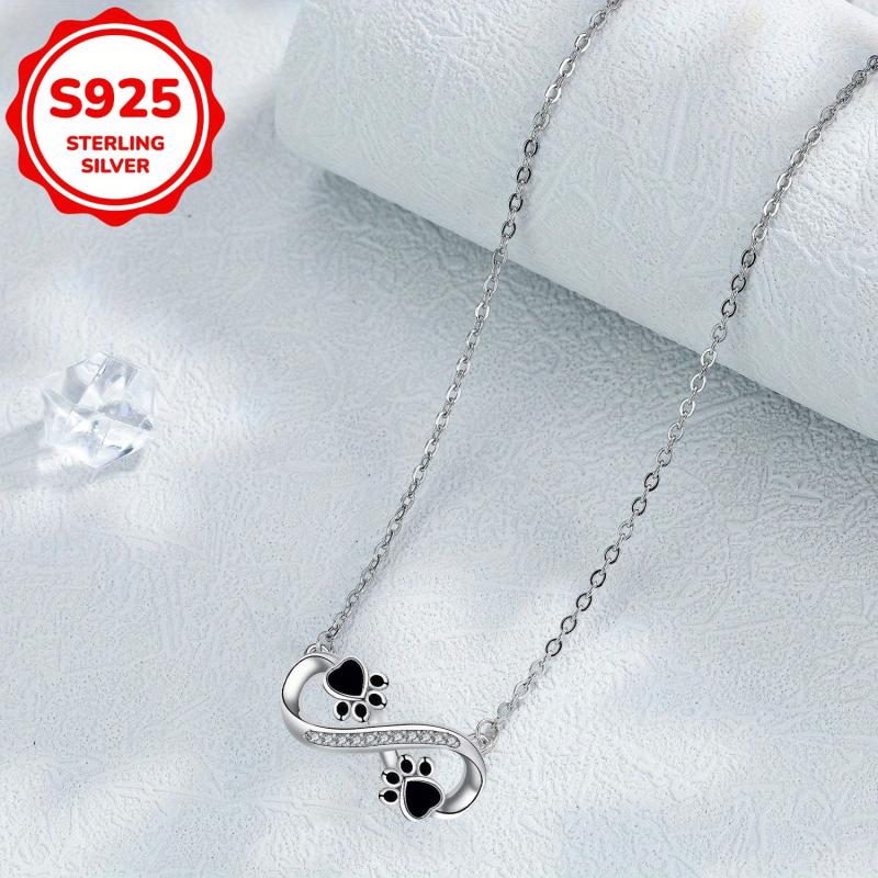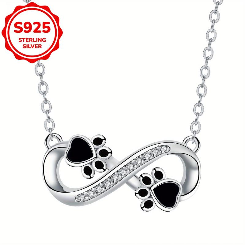 Delicate 925 sterling silver paw print necklace with sparkling stones, perfect for pet lovers. The adjustable chain makes it a versatile piece of memorial jewelry.