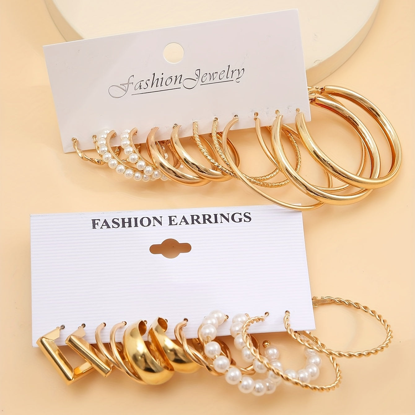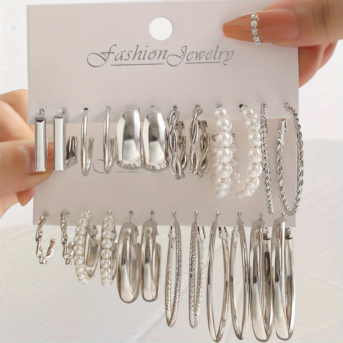 Elevate your style with this set of 12 pairs of hoop earrings featuring faux pearl accents. Perfect for any occasion!