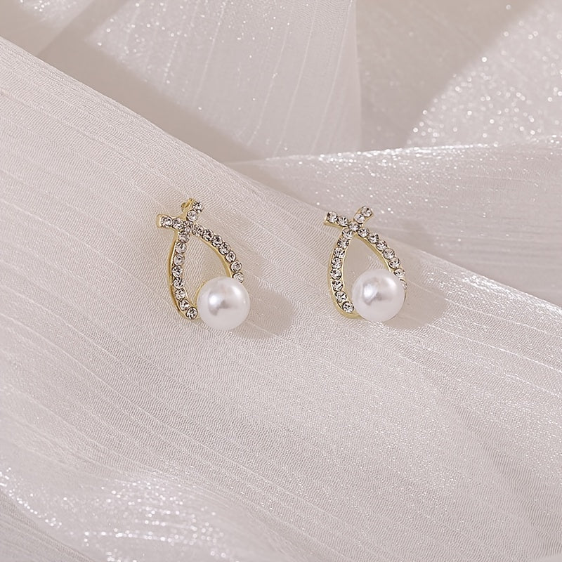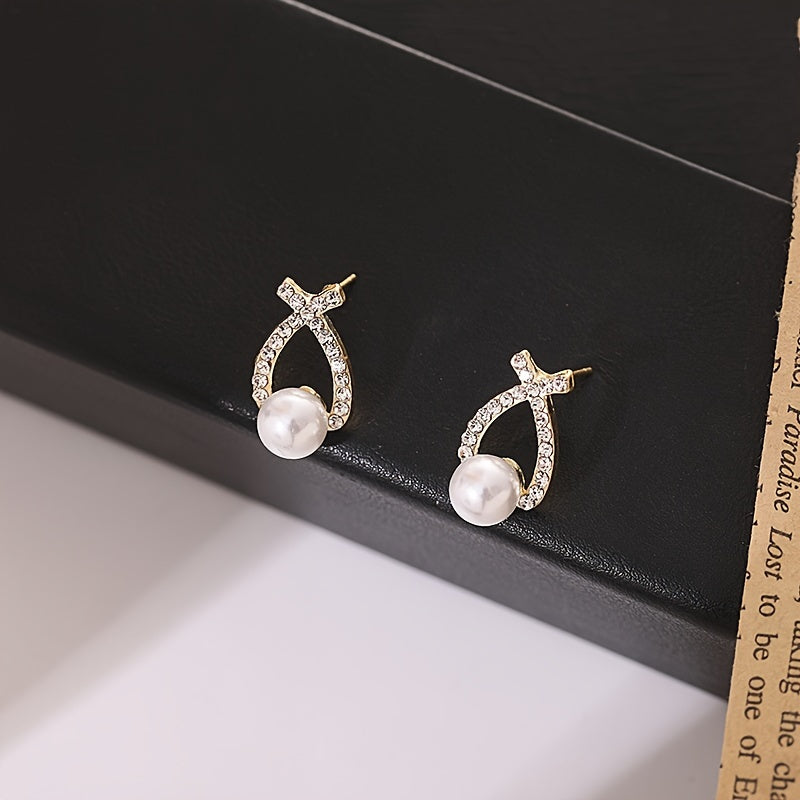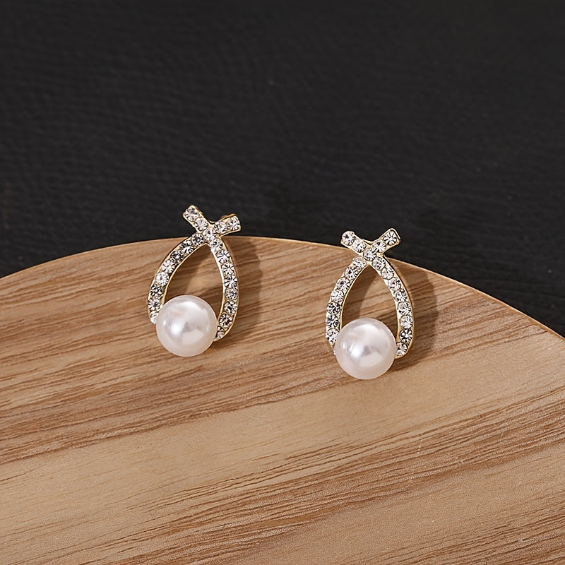 Elegant round shape faux pearl stud earrings for a touch of sophistication. Perfect for adding a touch of glamour to any outfit.