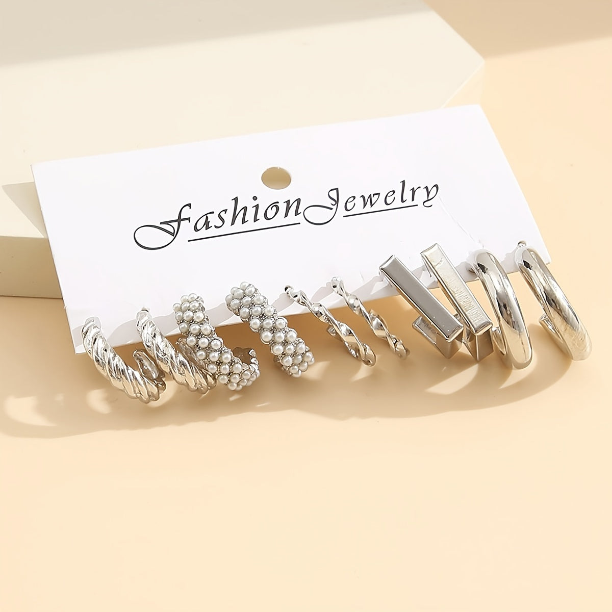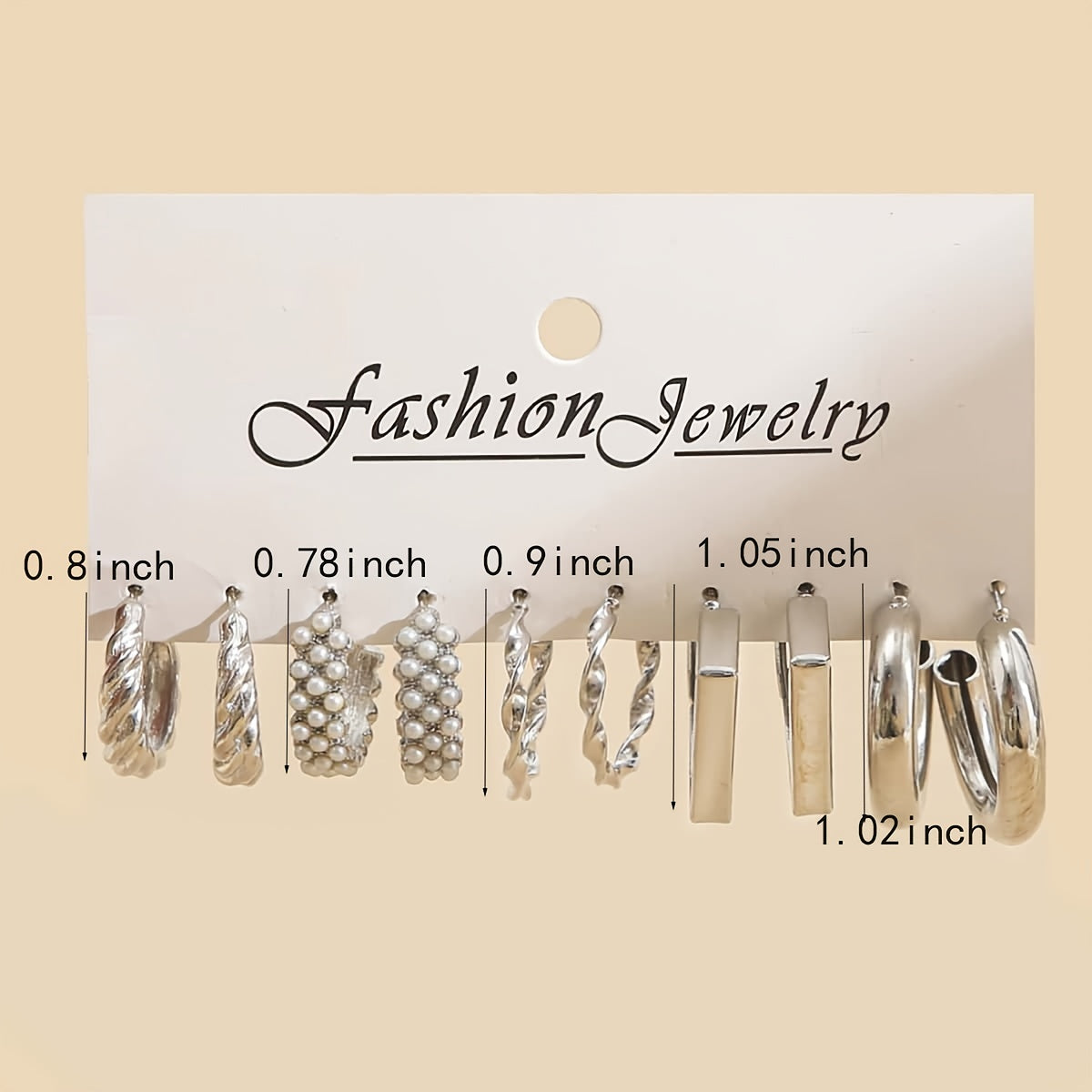 Faux Pearl Metal Earrings 5Pairs Set Classic For Women Girls