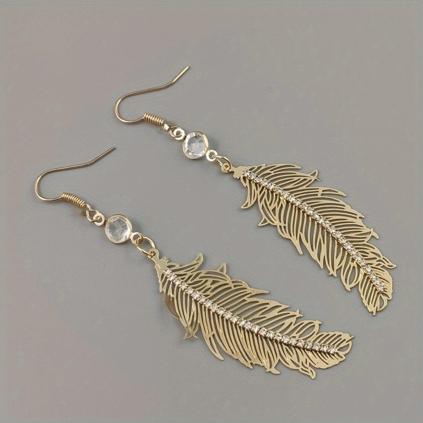 These elegant long feather earrings feature sparkling crystals, making them perfect for weddings, engagements, or as a gift for someone special.