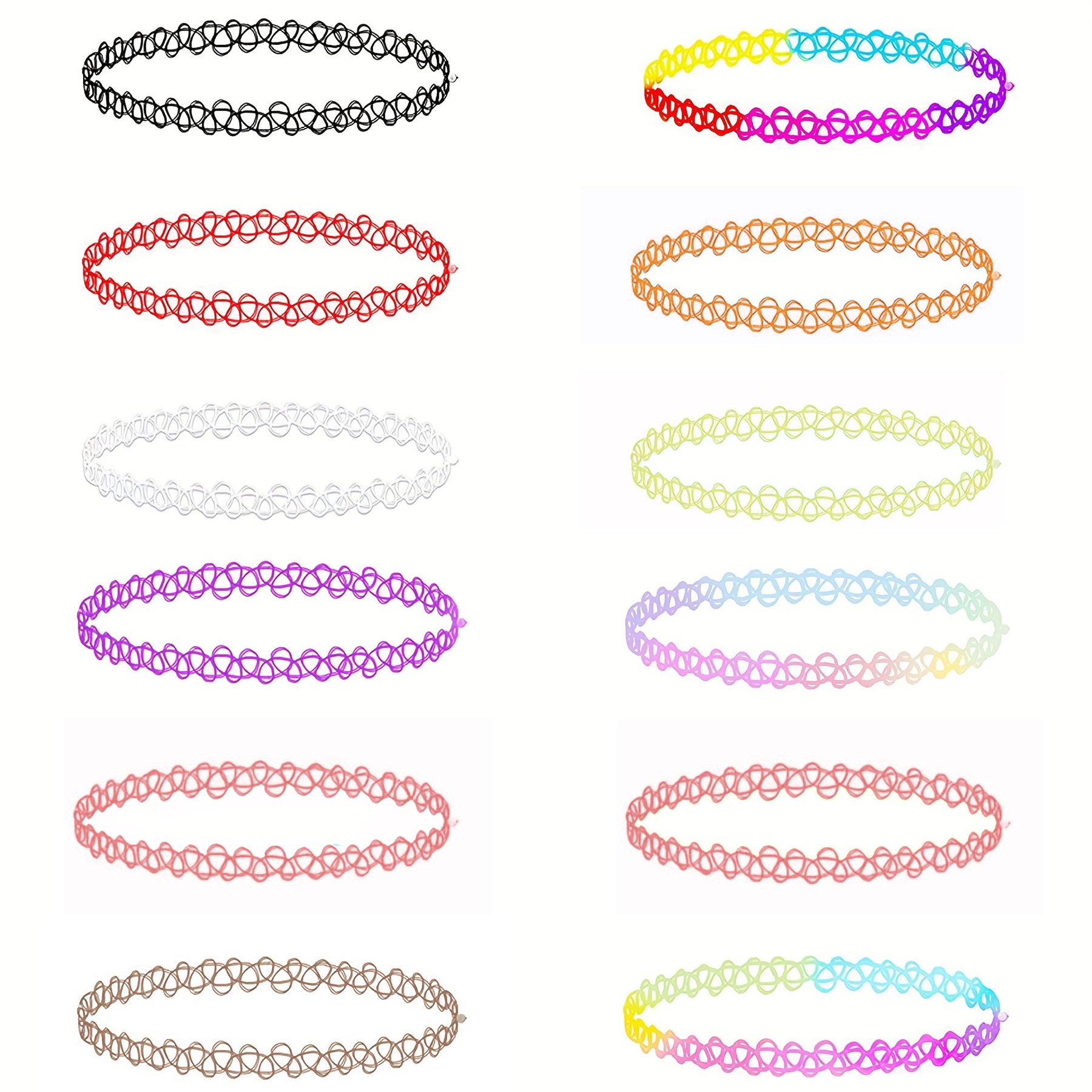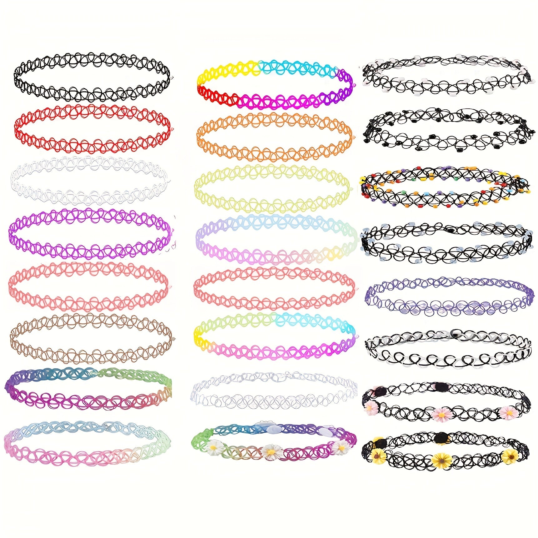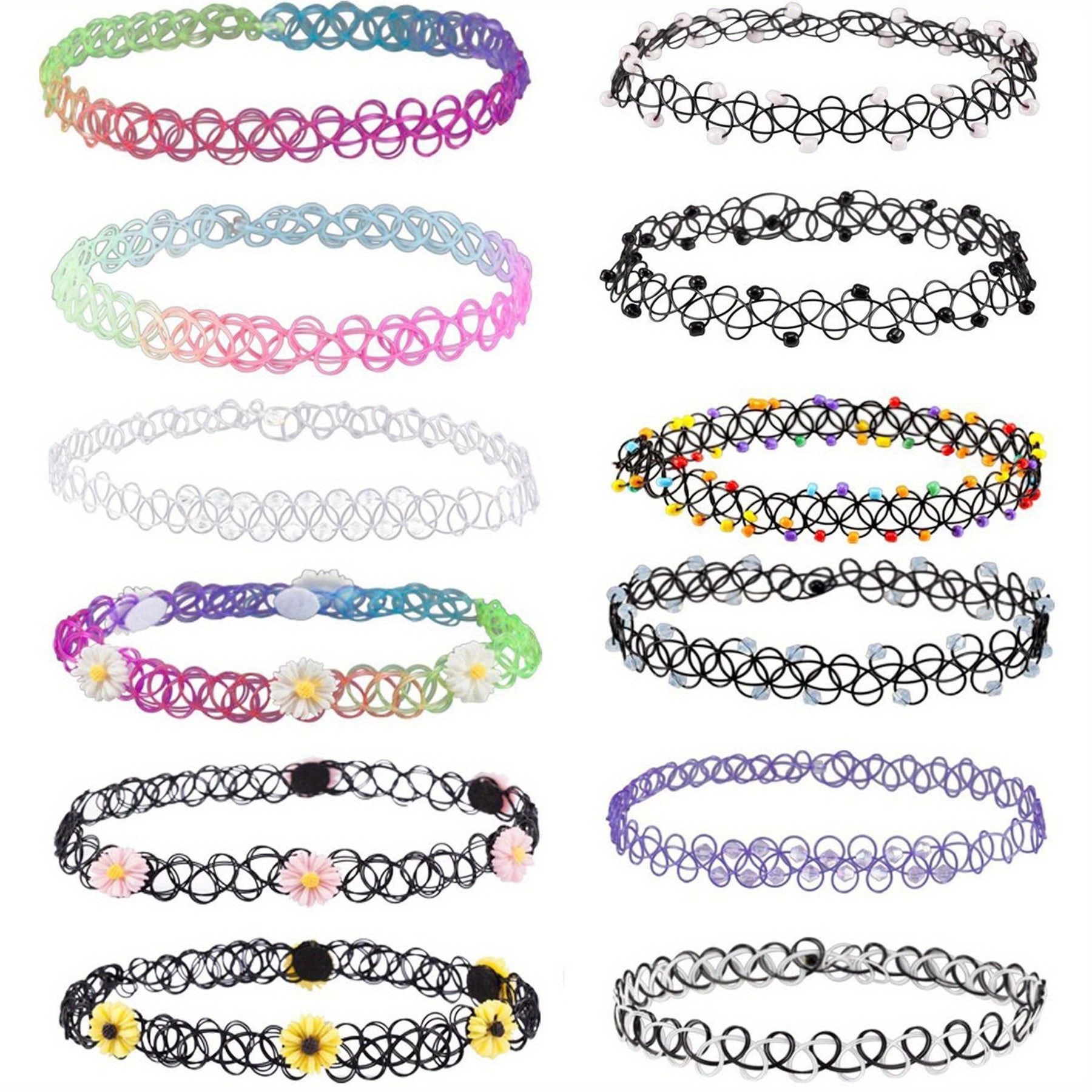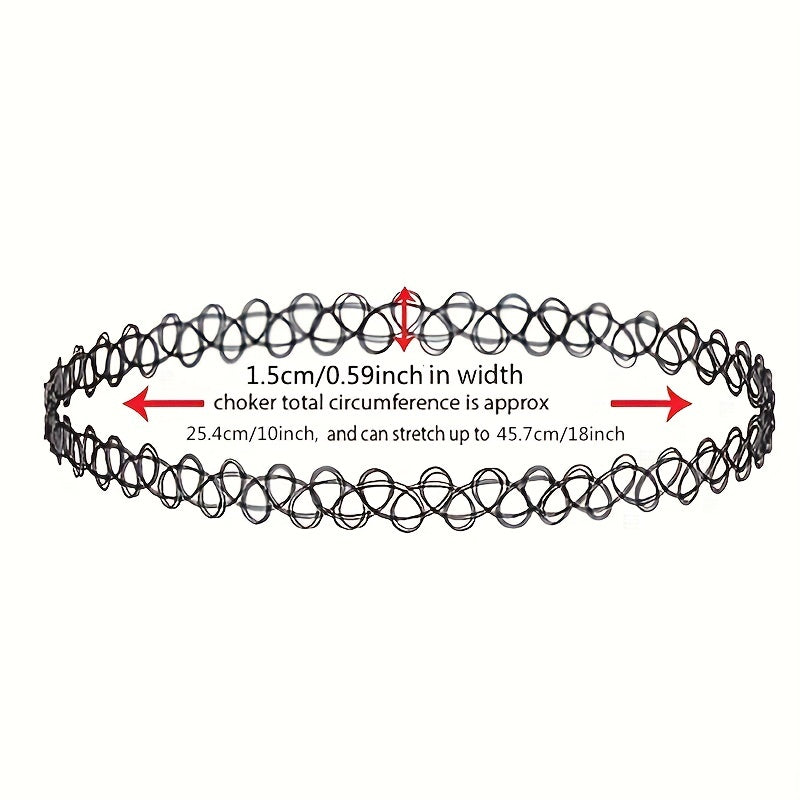 These chokers are a trendy addition to any outfit. Made of elastic material, they are comfortable to wear and can easily be adjusted to fit various neck sizes. Perfect for adding a touch of edge and style to your look.