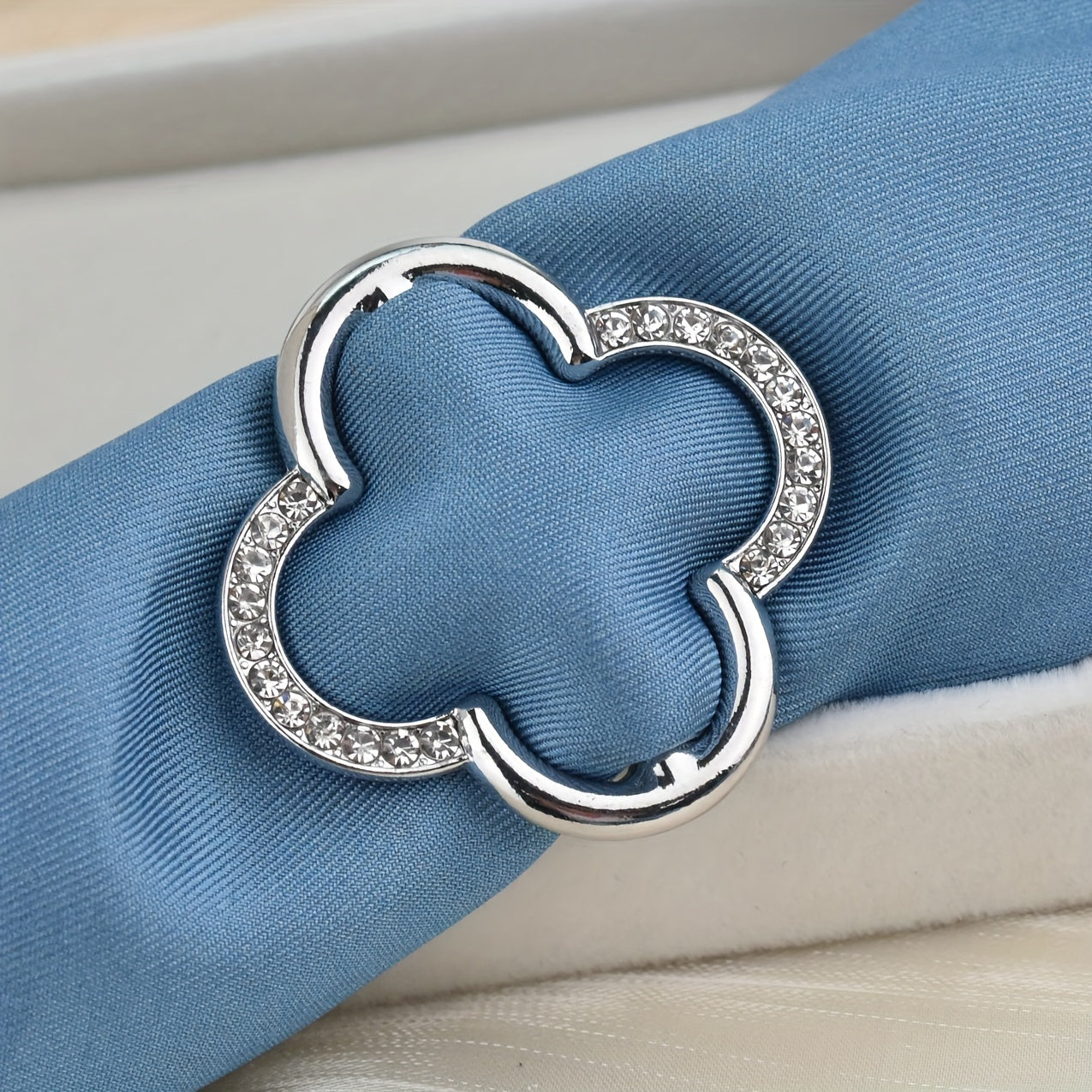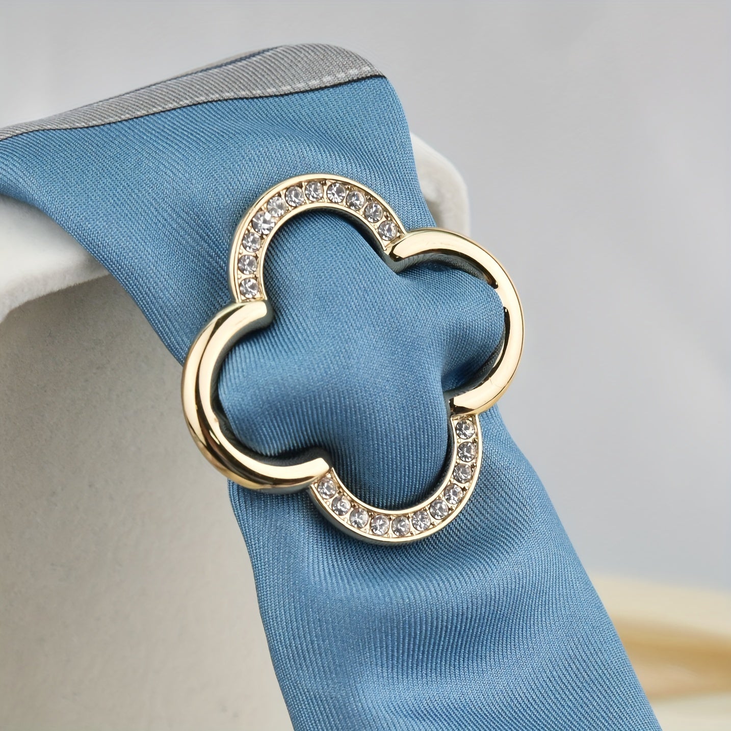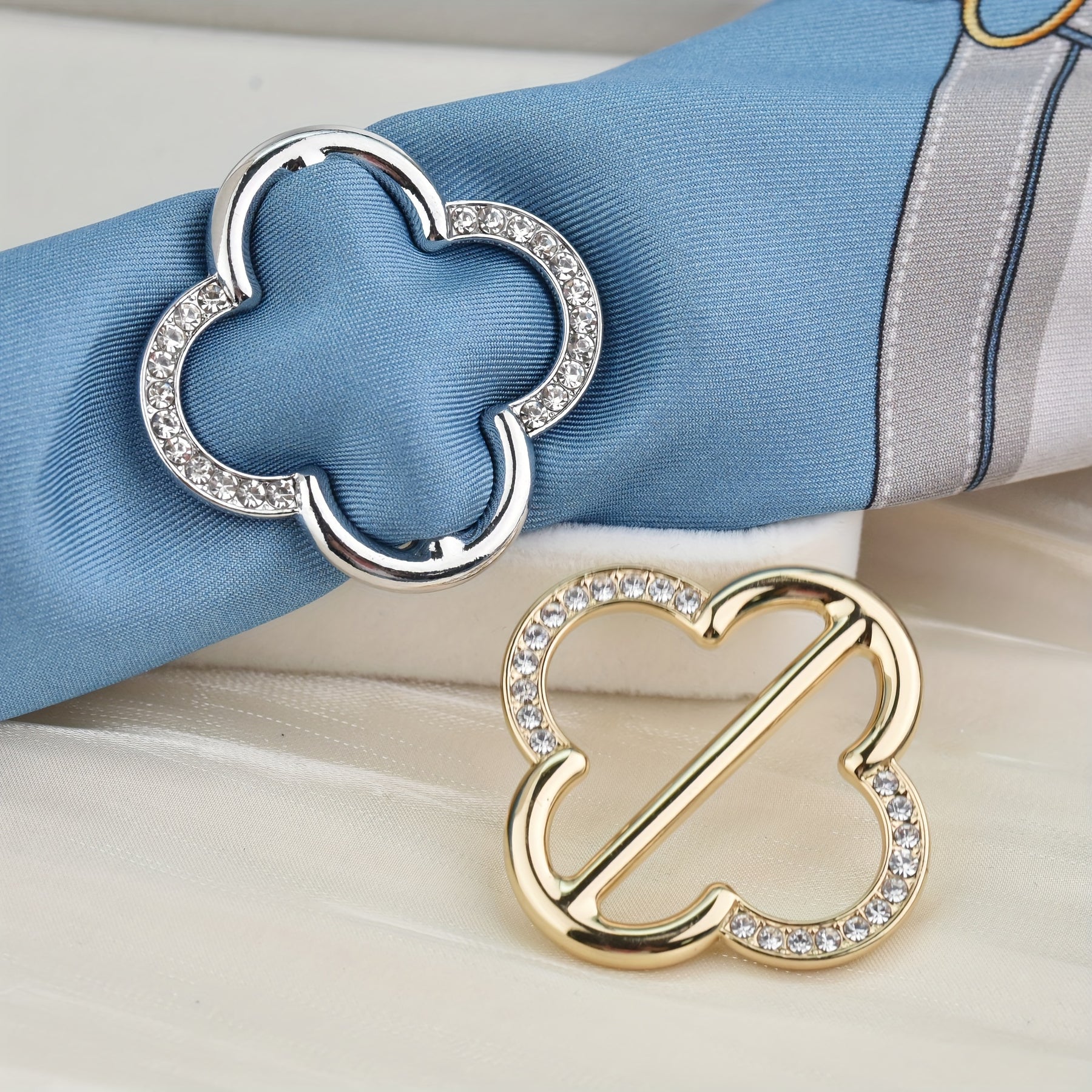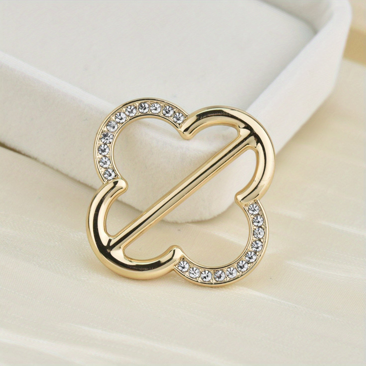 Add a touch of elegance to your scarf with this hollow out four leaf clover shaped scarf buckle adorned with rhinestones. Perfect for women, ladies, and girls as a stylish accessory.