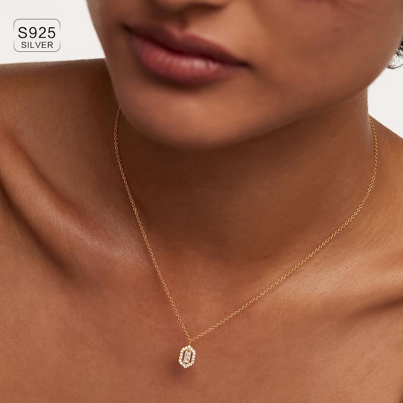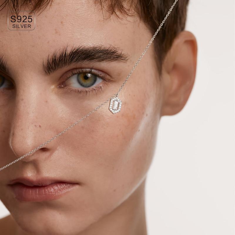 Elegant pendant necklace featuring synthetic zirconia stones set in 925 sterling silver with a hypoallergenic anti-snag chain. Perfect for weddings and formal occasions.