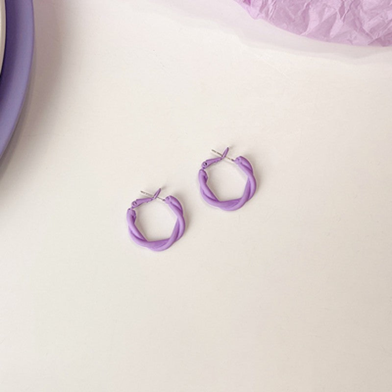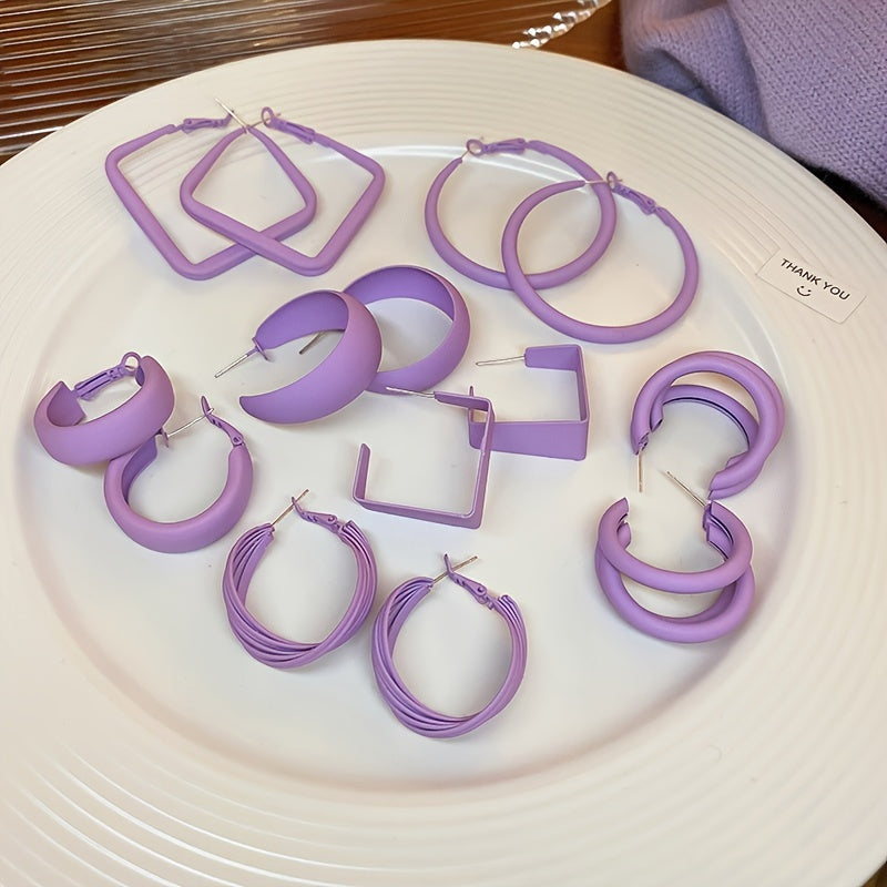 Add a touch of elegance to your look with these geometric purple hoop earrings. Perfect for daily wear or special occasions.