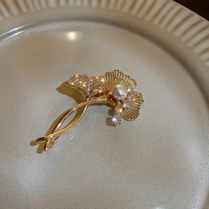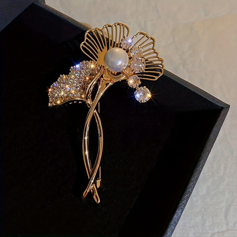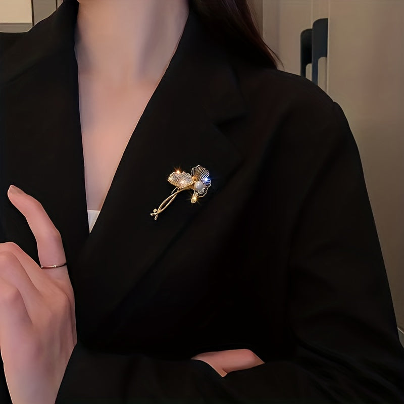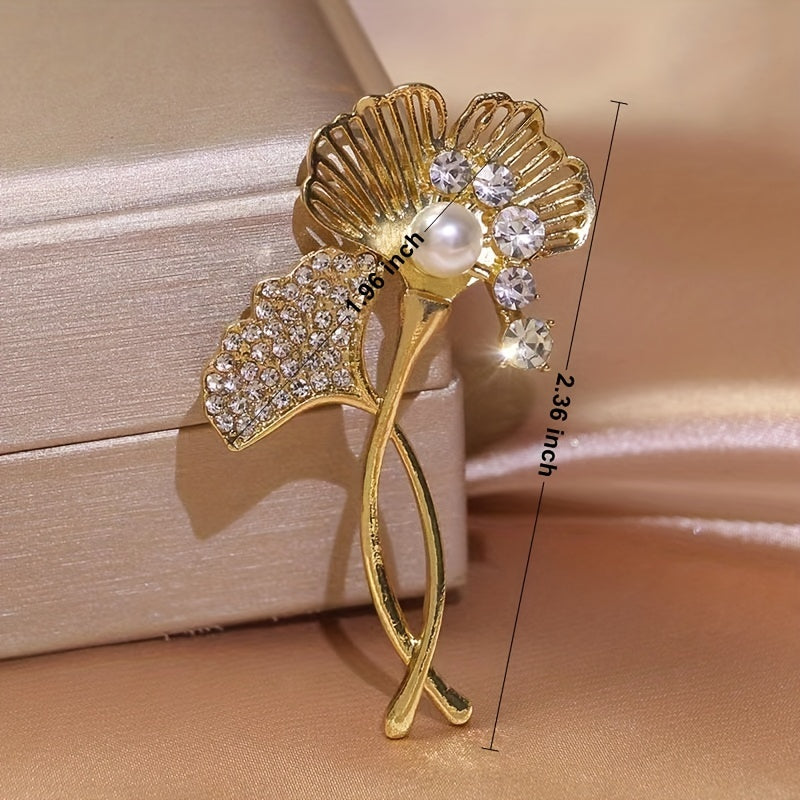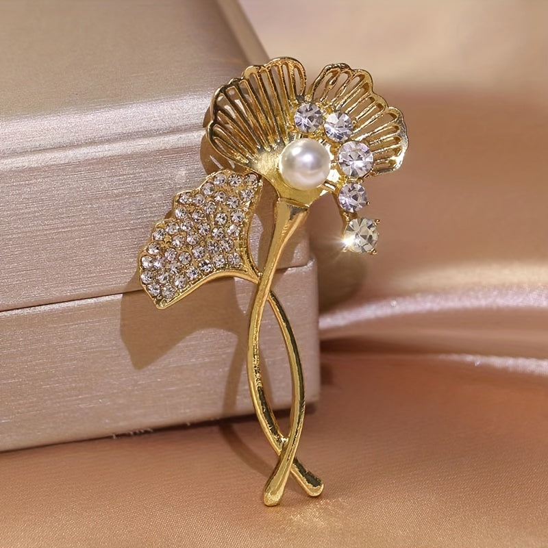 Elegant ginkgo leaf brooch with faux pearls, perfect accessory for women.