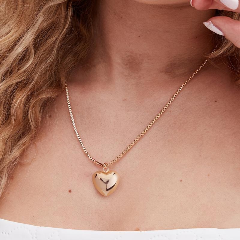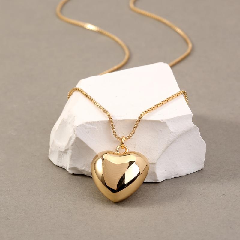 This Copper Heart Pendant Necklace features a big heart design with a glossy finish, perfect for adding a touch of elegance to any outfit. The minimalist style makes it a versatile accessory for all occasions.