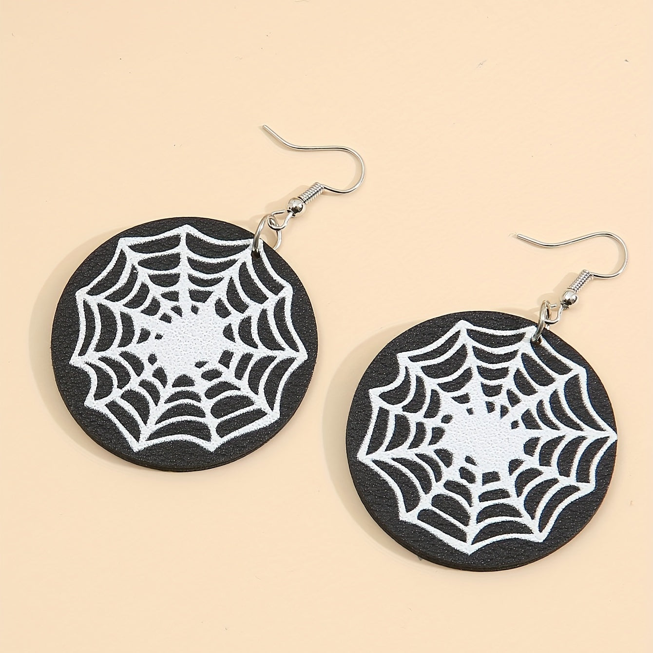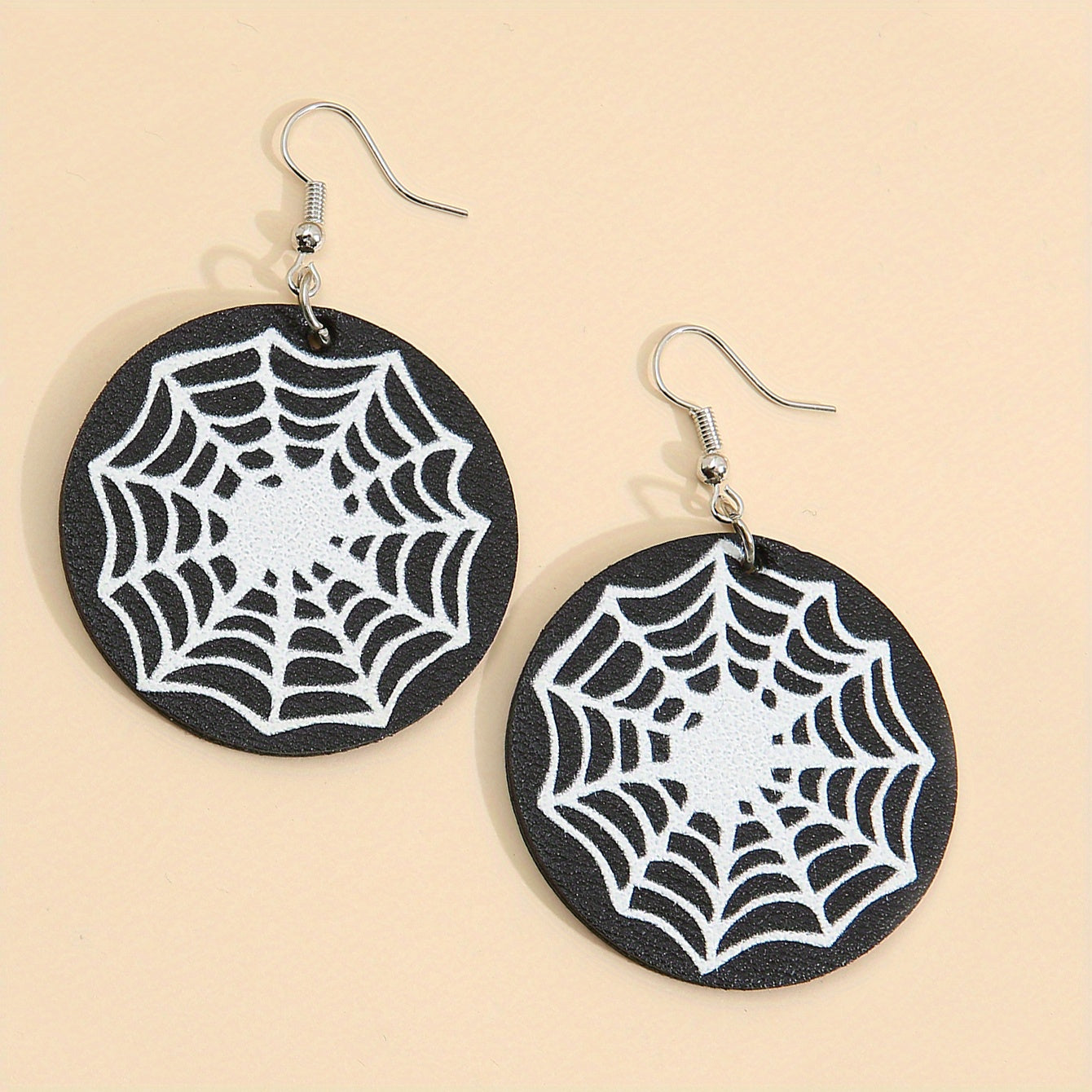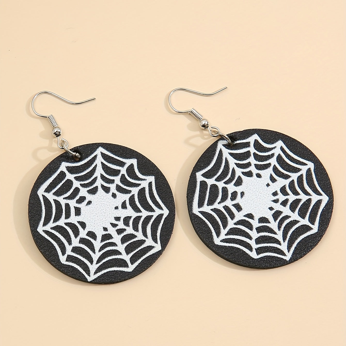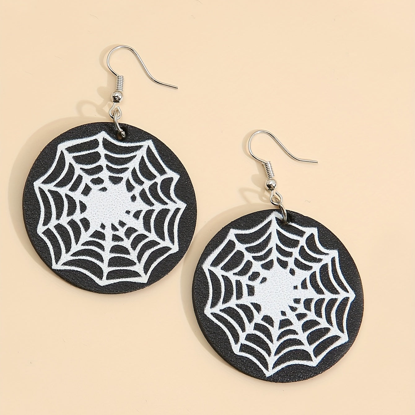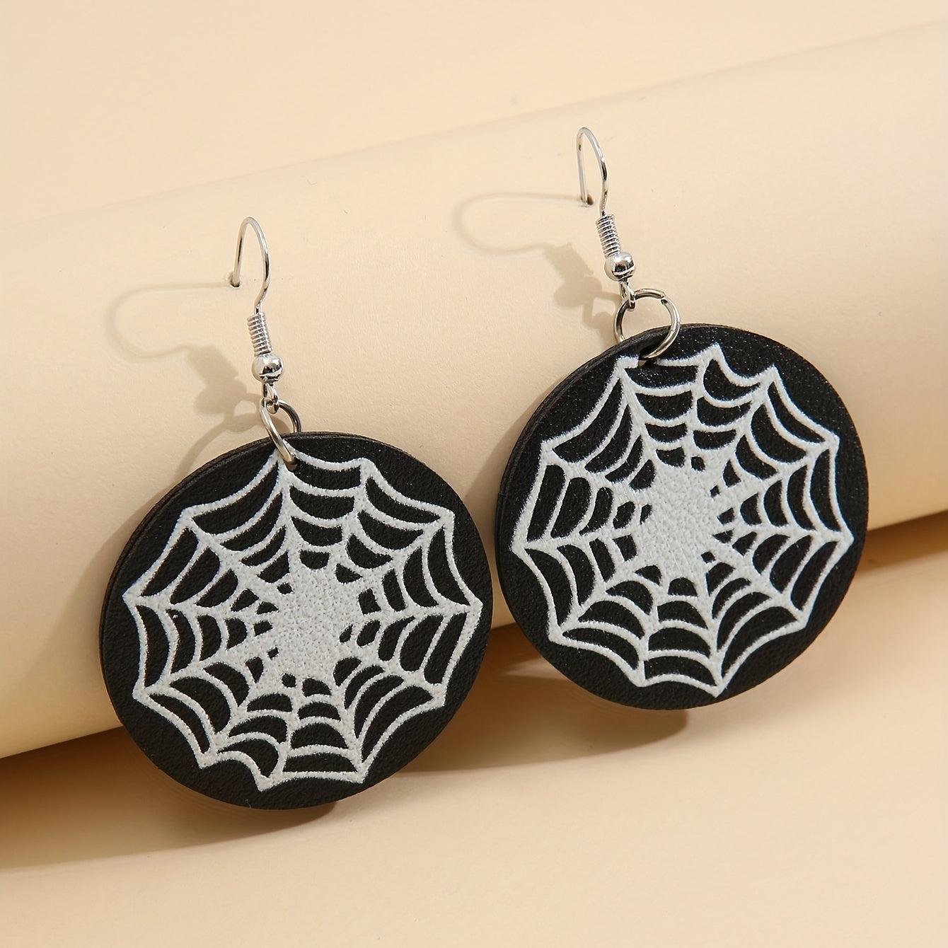 These Halloween party earrings feature a spooky spider web pattern, made from PU leather. Perfect as a gift for females who love gothic fashion.