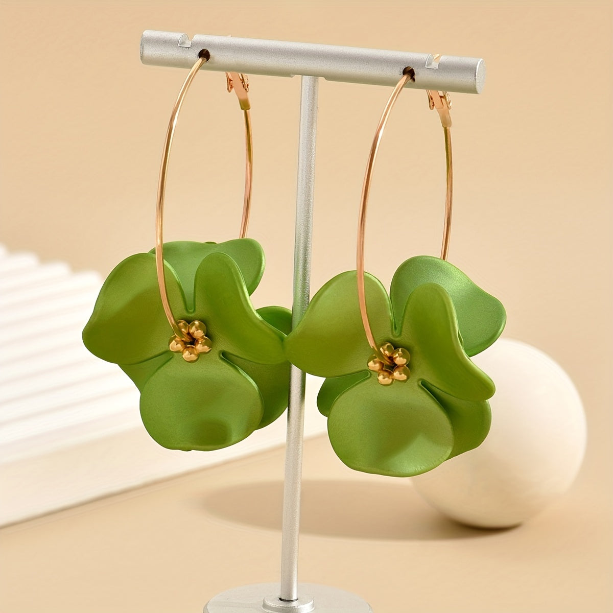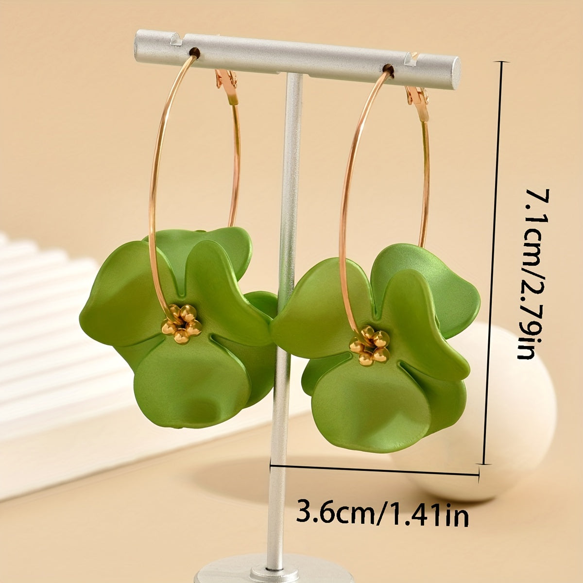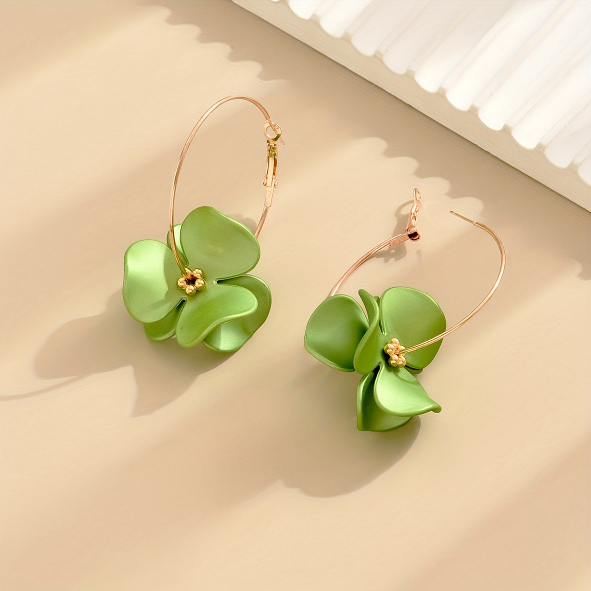 Green Flower Decor Hoop Earrings Iron Jewelry