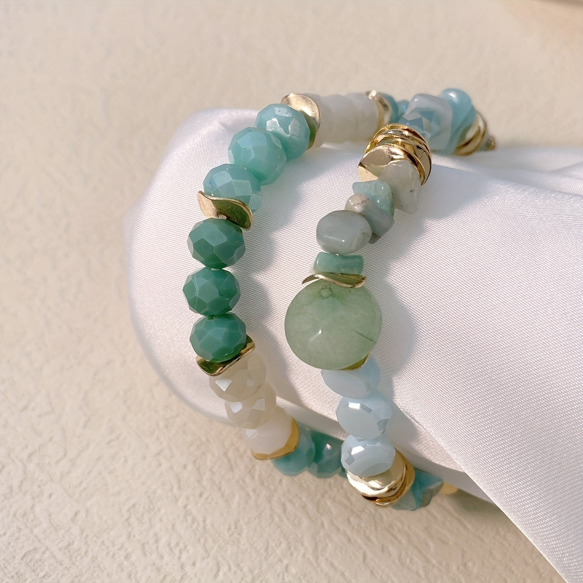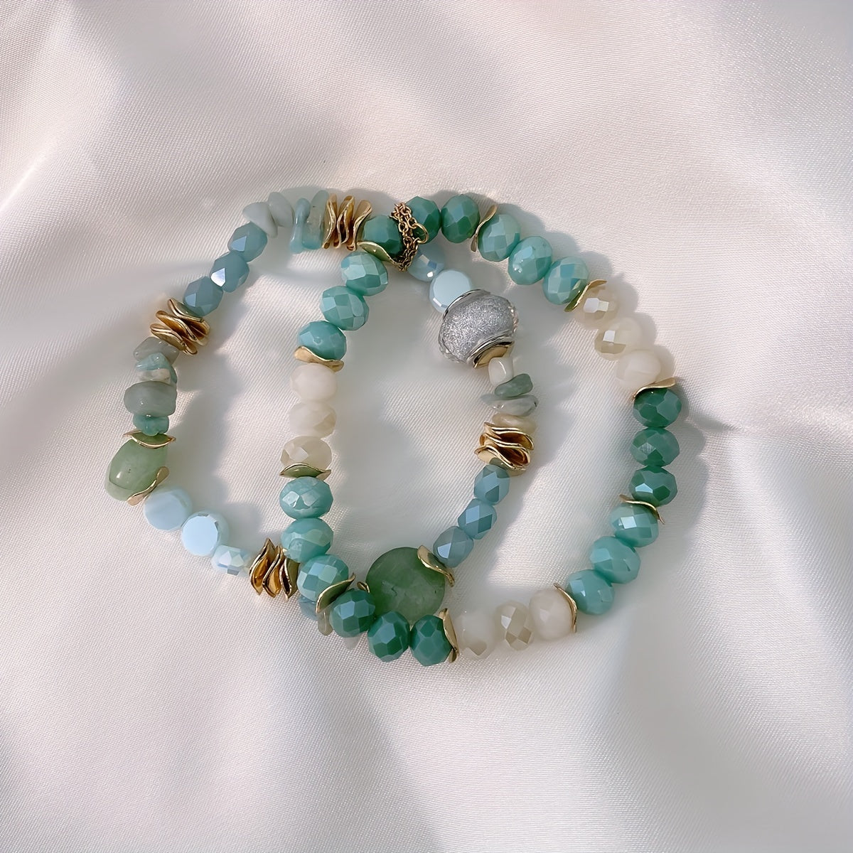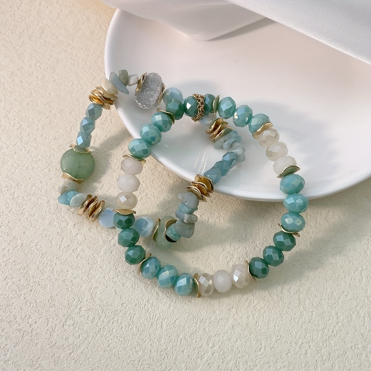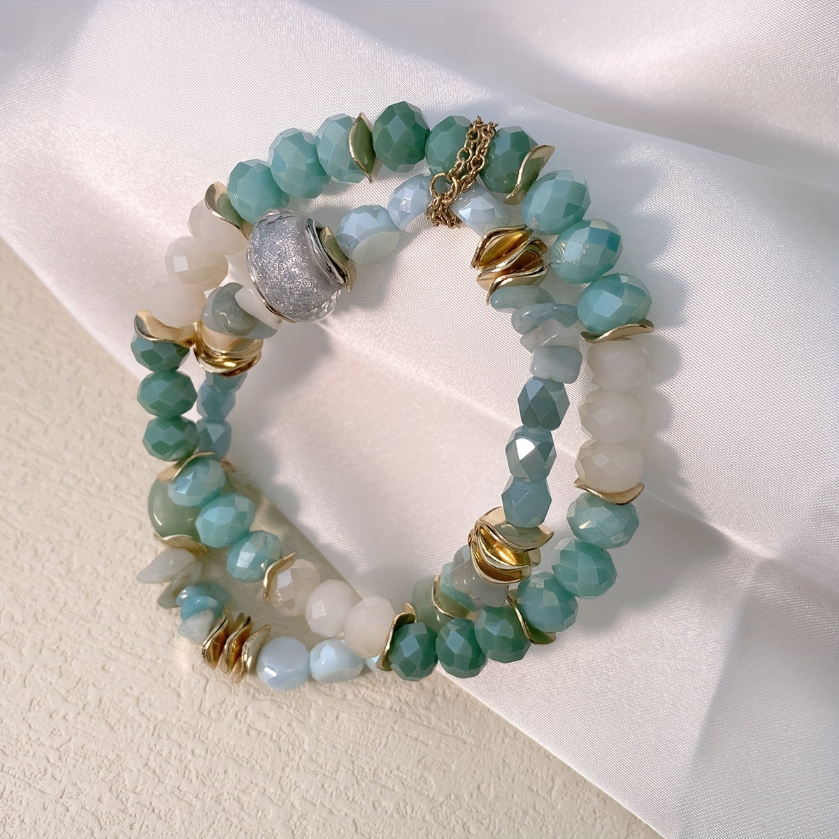 This holiday style bracelet features natural stone beads and metal sheet crystal beads, perfect for healing and relaxation.