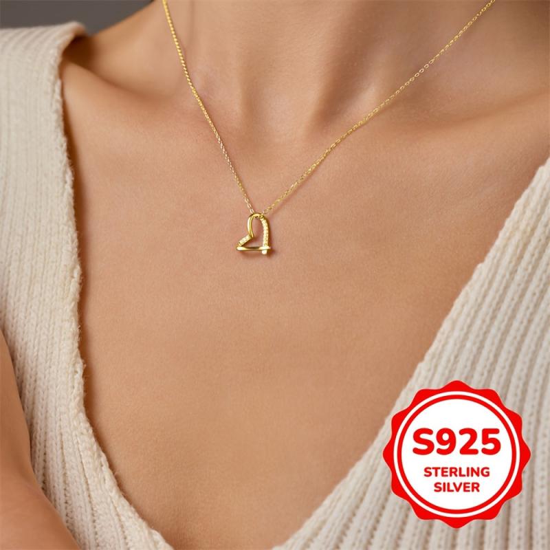 This stunning AIBELOPY S925 Silver pendant features an irregular hollow love heart design adorned with synthetic zirconia, perfect for Valentine's or as a gift for friends.