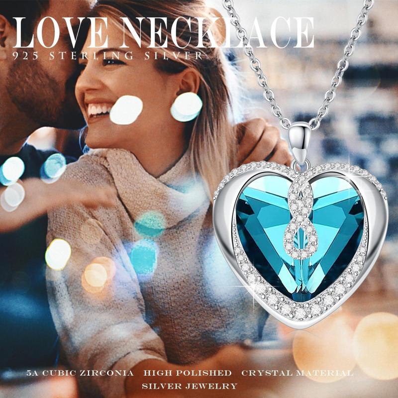 Heart Shaped Necklace Infinity Chain 925 Sterling Silvery Heart Shaped Pendant