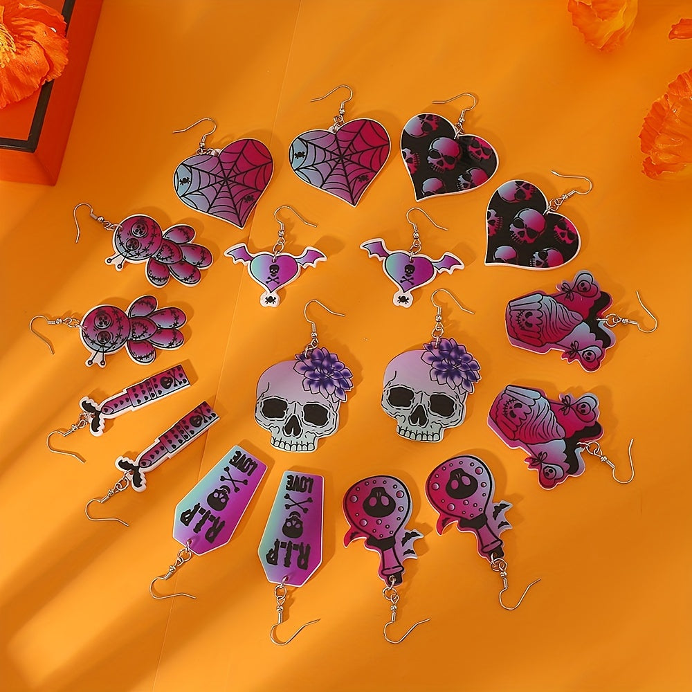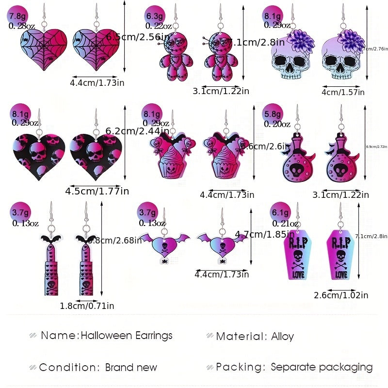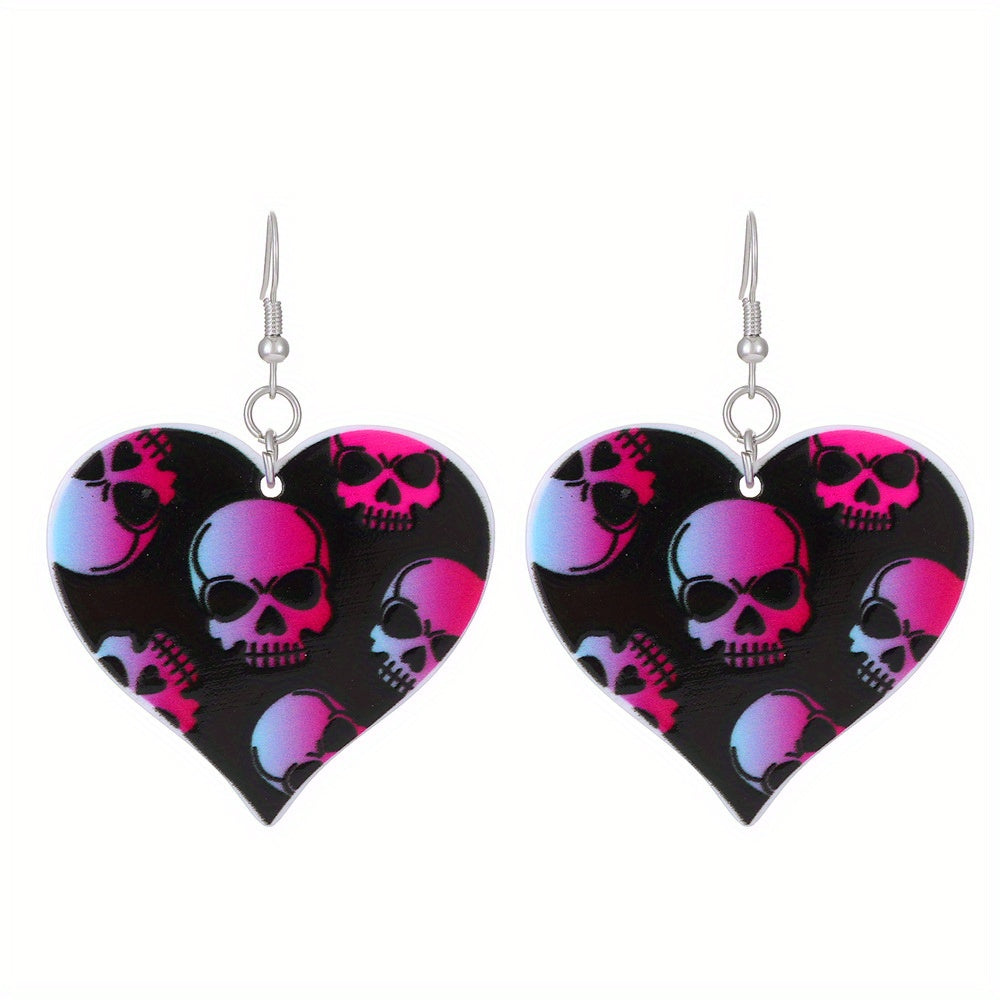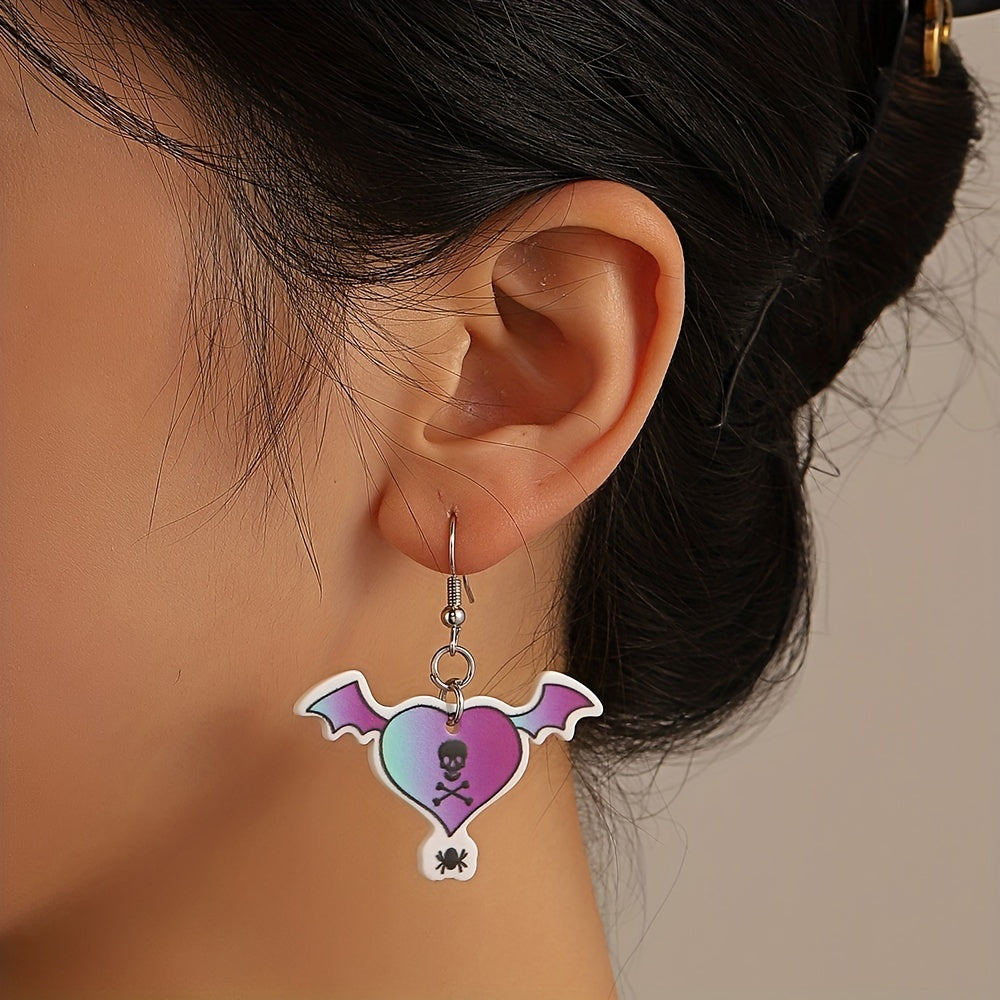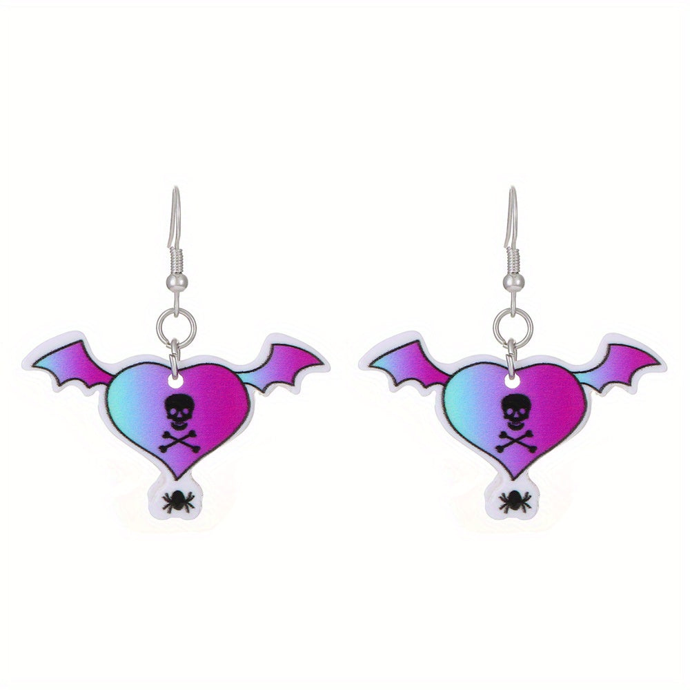 Heart Skull Bat Halloween Dangle Earrings Goth Style Ghost Ornaments