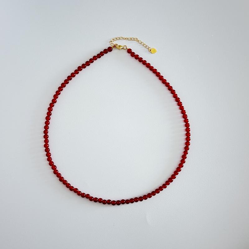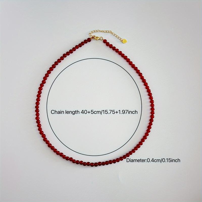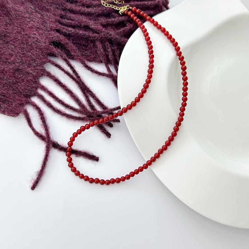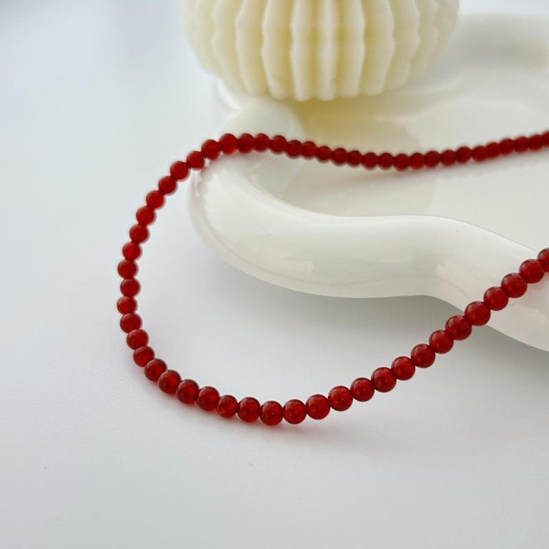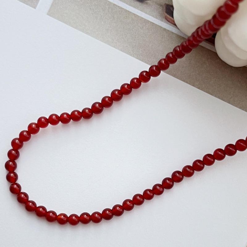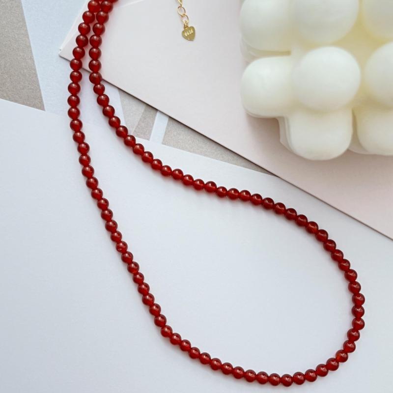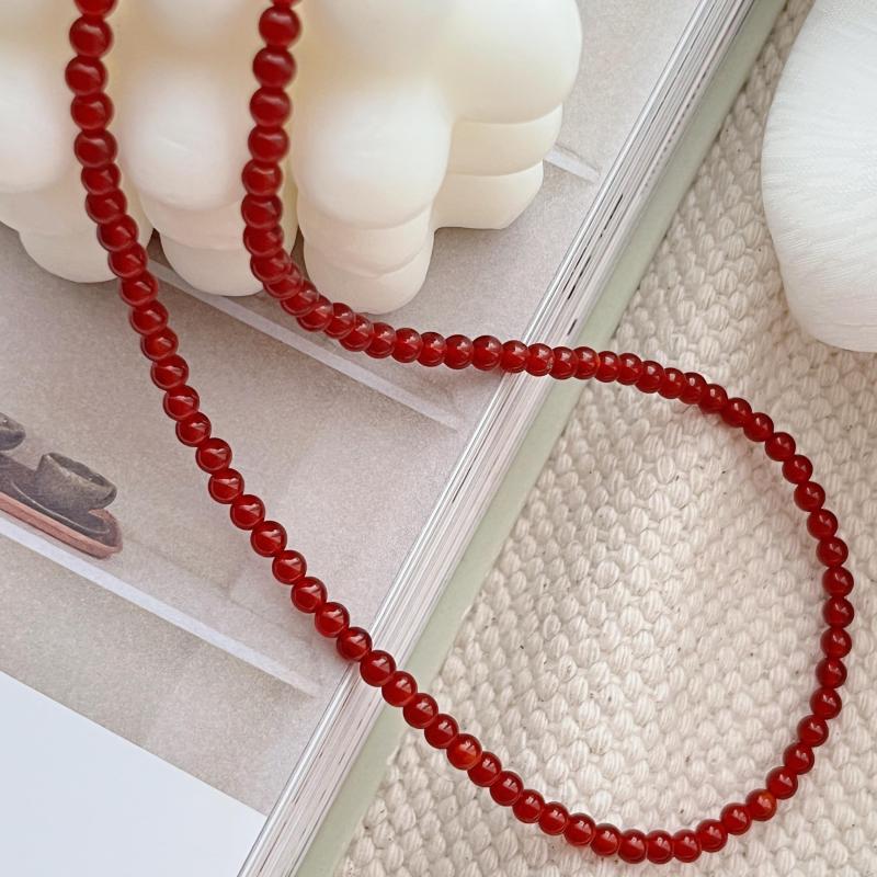 Elegant 4mm red agate beads handcrafted into a stylish 925 silver necklace, perfect for daily wear or special occasions.