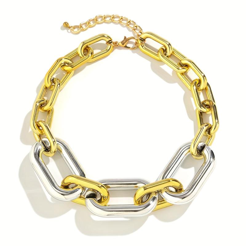 Make a statement with this exaggerated hip hop punk necklace featuring chunky chains and geometric clasps. A minimalist design that adds edgy flair to any outfit.