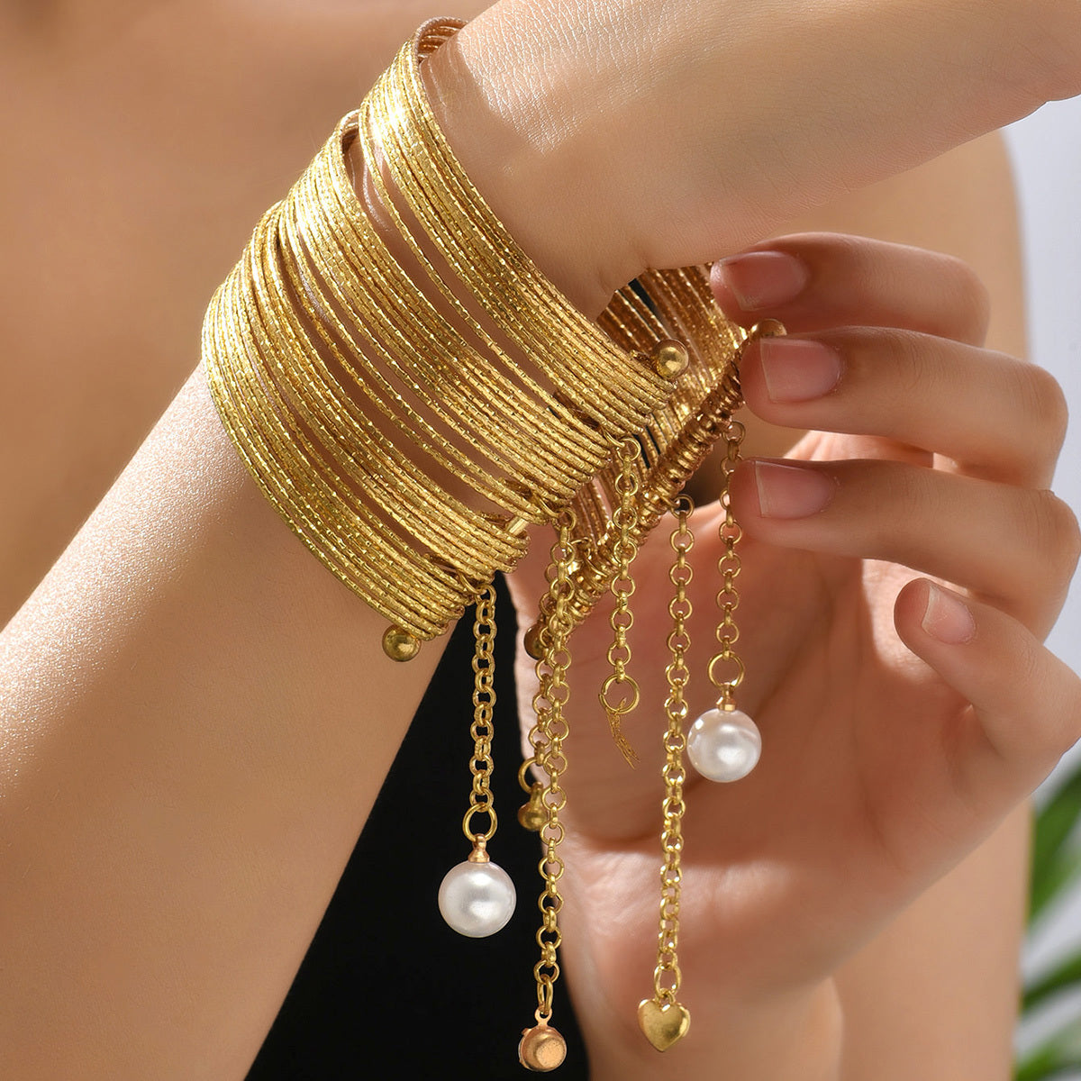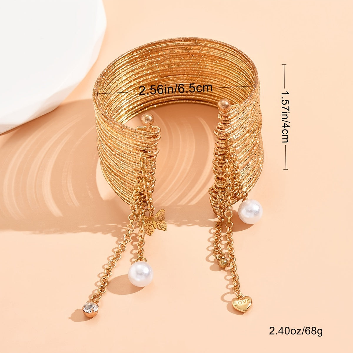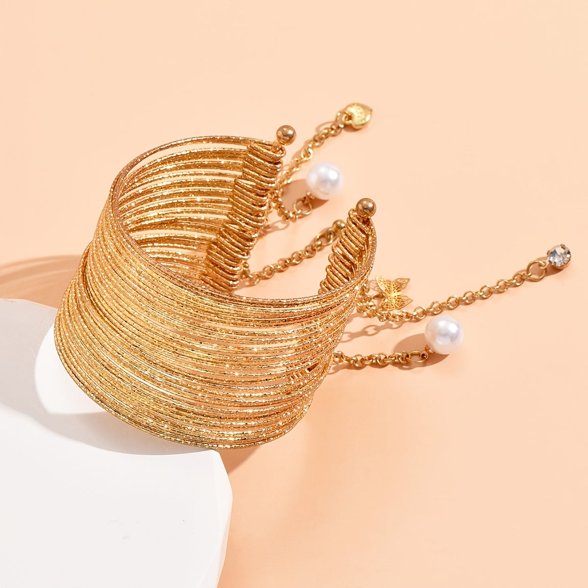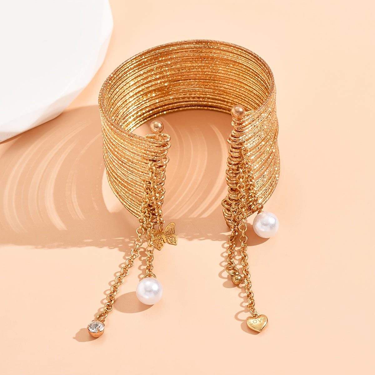 Hollow Chain Pendant Bangle Bracelet 14K Plated Hand Jewelry